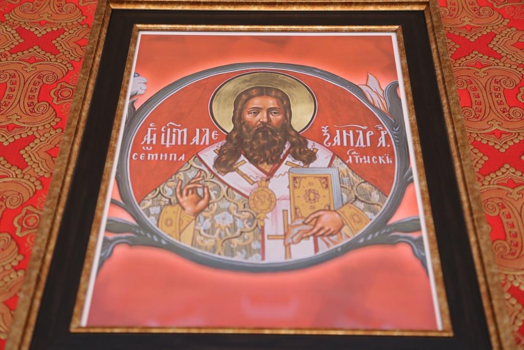 Литургия завершилась славлением перед образом священномученика Александра, архиепископа Семипалатинского, после чего владыка епископ вознес молитву священномученику.