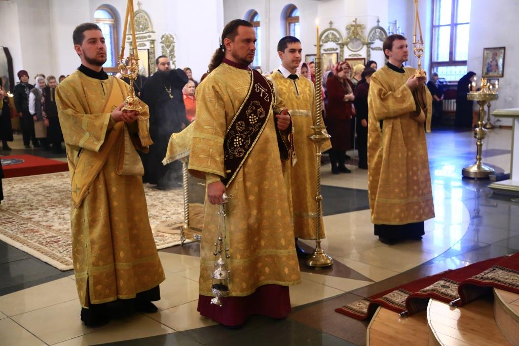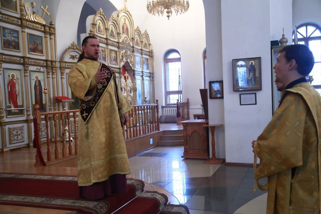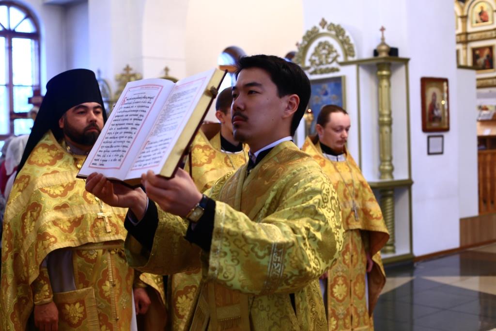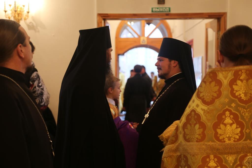 Его Преосвященству сослужили: духовник Свято-Троицкого Усть-Каменогорского мужского монастыря архимандрит Спиридон (Теплухин), иеромонах Никодим (Авдеев), иеромонах Севастиан (Андрющенко), секретарь Управляющего Усть-Каменогорской епархией иеромонах Силуан (Магилев), заведующий канцелярией Усть-Каменогорского епархиального управления иерей Константин Дьяков, иерей Алексий Клепиков, иерей Евгений Хохряков; архиерейский протодиакон Андрей Дудник, диаконский чин.