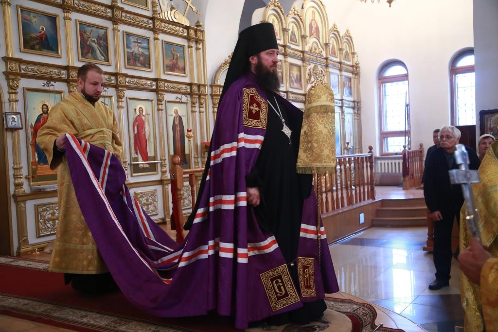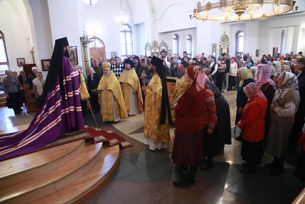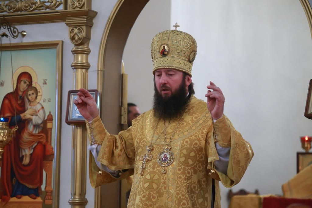 По окончании Литургии Преосвященный владыка обратился к участникам богослужения с архипастырским словом и благословил многочисленных богомольцев, молившихся в этот день в храме.