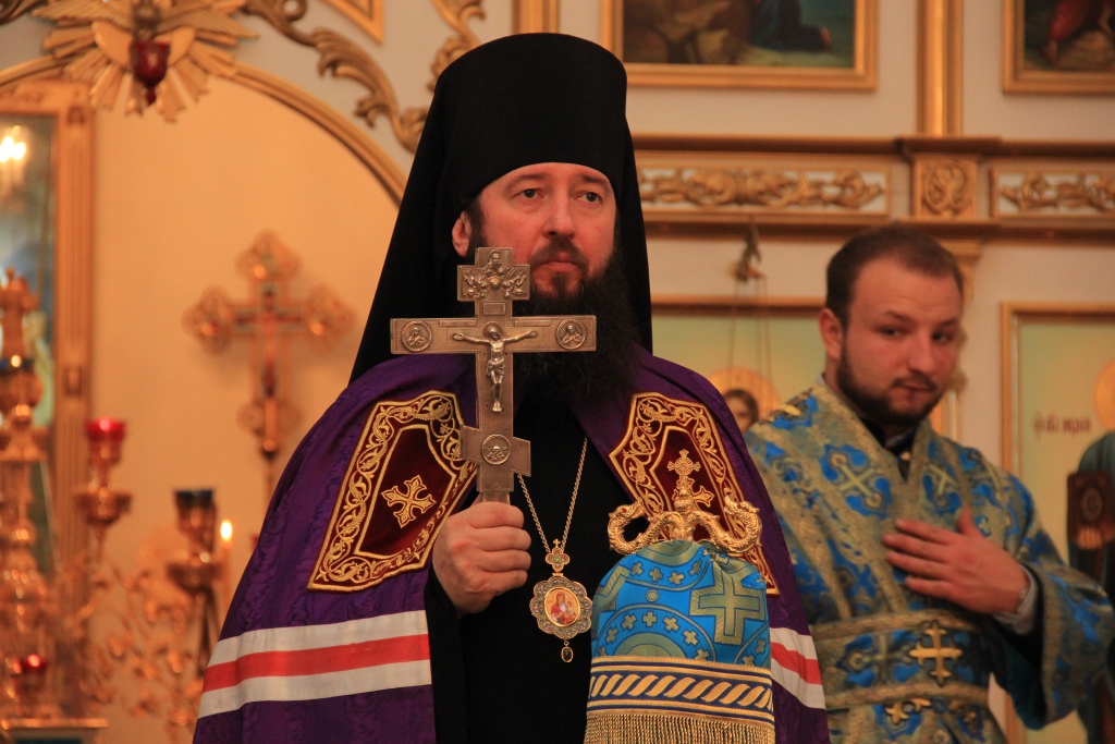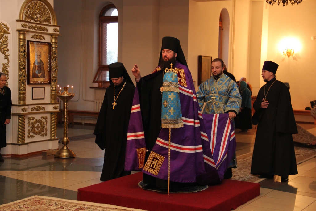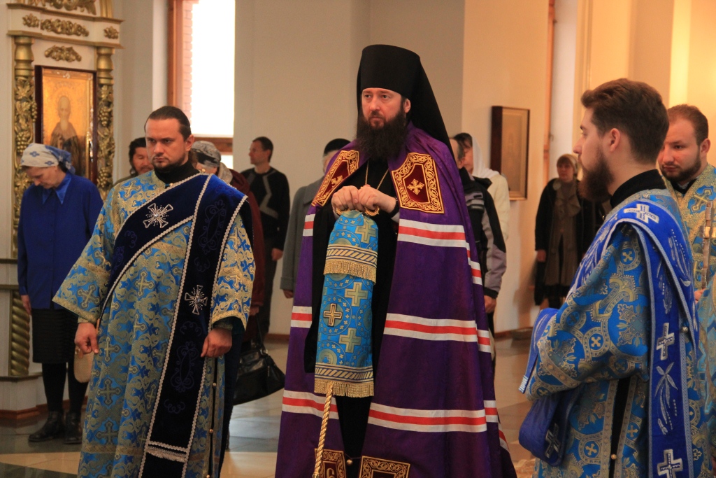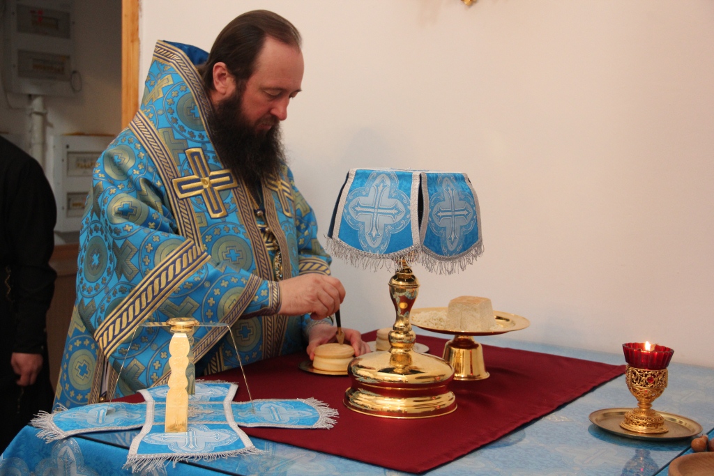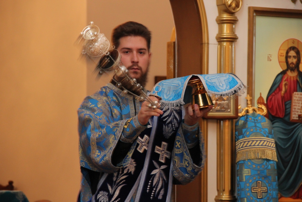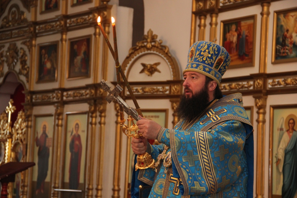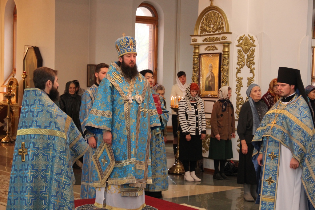 После совершения Таинства Евхаристии духовенство, во главе с владыкой, прославили Царицу Небесную перед Ее Пречистым образом.