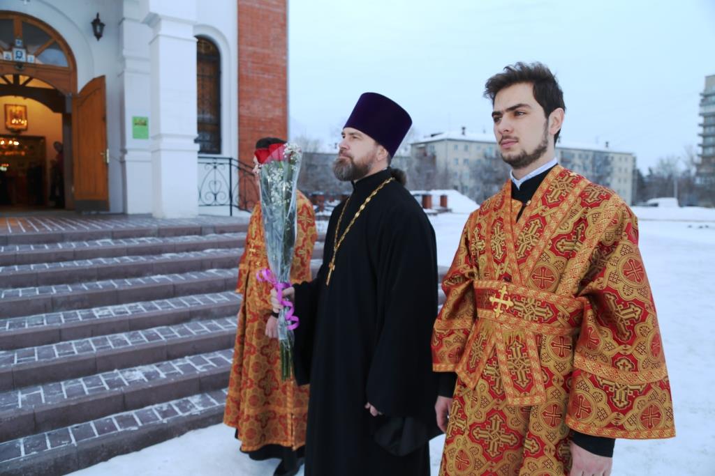 Владыке Амфилохию сослужили: духовник Свято-Троицкого Усть-Каменогорского мужского монастыря архимандрит Спиридон (Теплухин), секретарь Усть-Каменогорской епархии иерей Евгений Яганов, благочинный Усть-Каменогорского церковного округа, настоятель Покровской церкви города иерей Алексий Анищенко; ключарь Андреевского собора иеромонах Никодим (Авдеев), иеромонах Севастиан (Андрющенко), секретарь Управляющего Усть-Каменогорской епархией иеромонах Силуан (Магилев), иерей Алексий Клепиков; протодиакон Георгий Засыпкин, протодиакон Андрей Дудник.