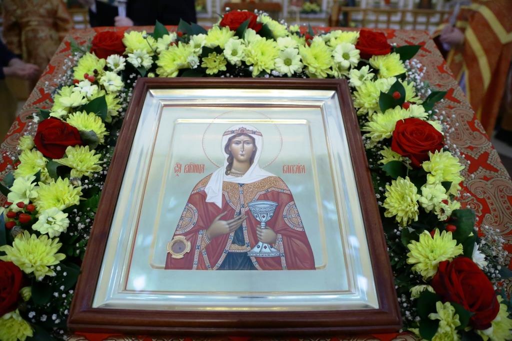 Литургия завершилась славлением перед иконой с частицей святых и многоцелебных мощей великомученицы Варвары.