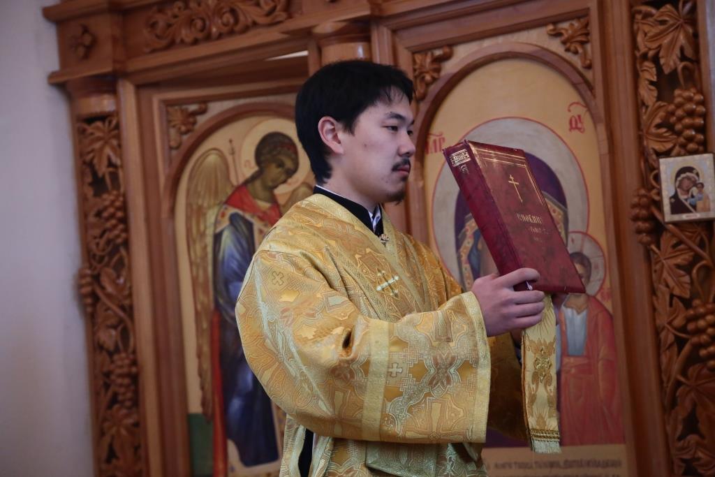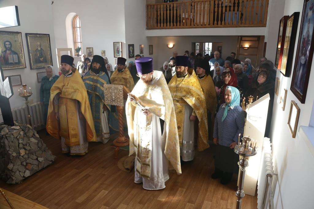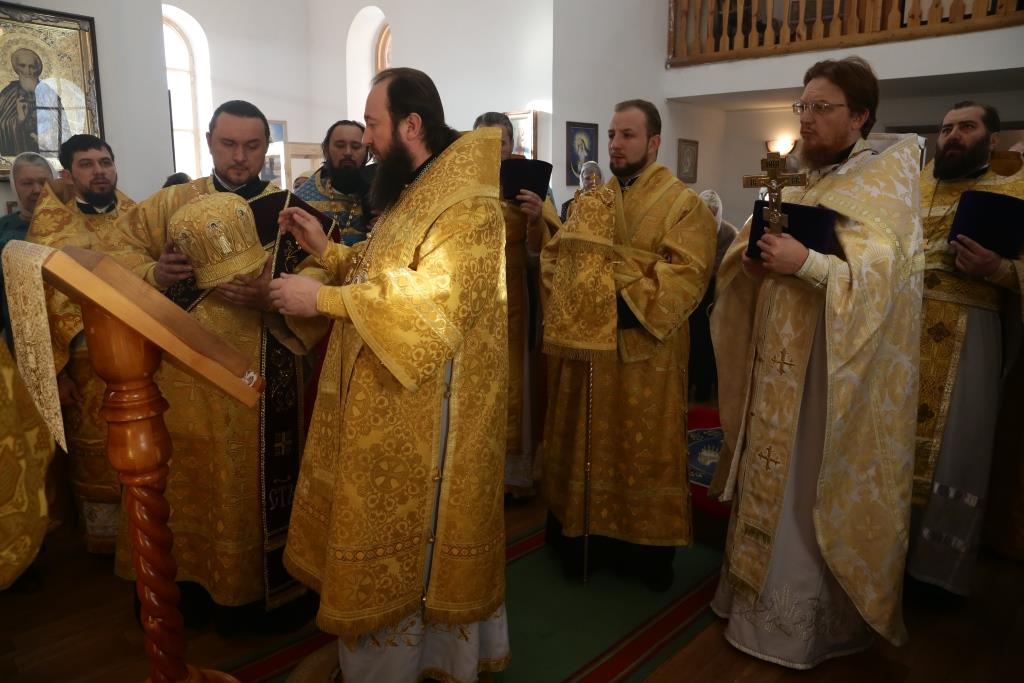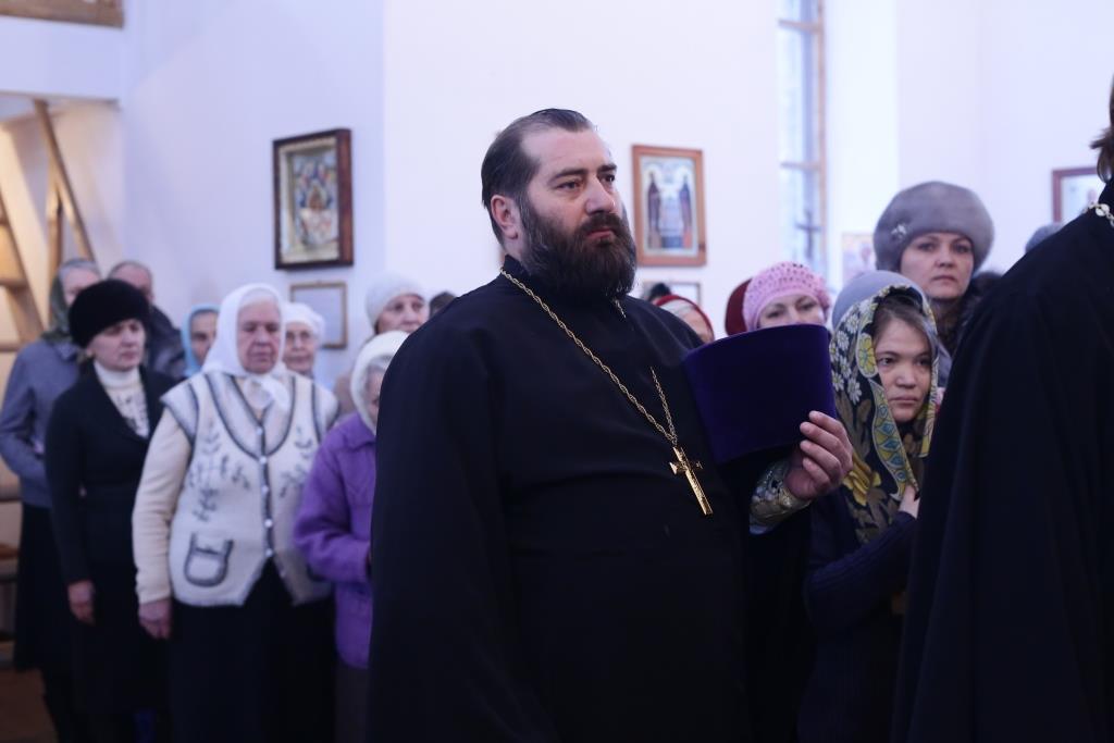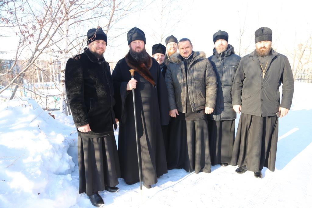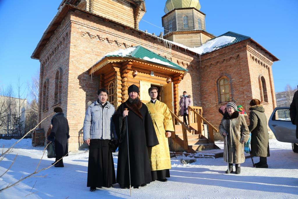 Его Преосвященству сослужили: настоятель Свято-Никольской церкви г.Риддер протоиерей Игорь Копылов, секретарь Управляющего Усть-Каменогорской епархией иеромонах Силуан (Магилев), настоятель храма иерей Андрей Москаленко, руководитель Епархиальной комиссии по делам молодёжи иерей Вячеслав Гутов, клирик Андреевского кафедрального собора Усть-Каменогорска протодиакон Андрей Дудник.