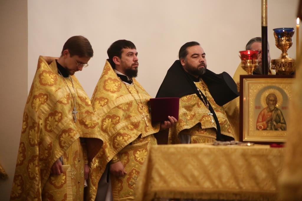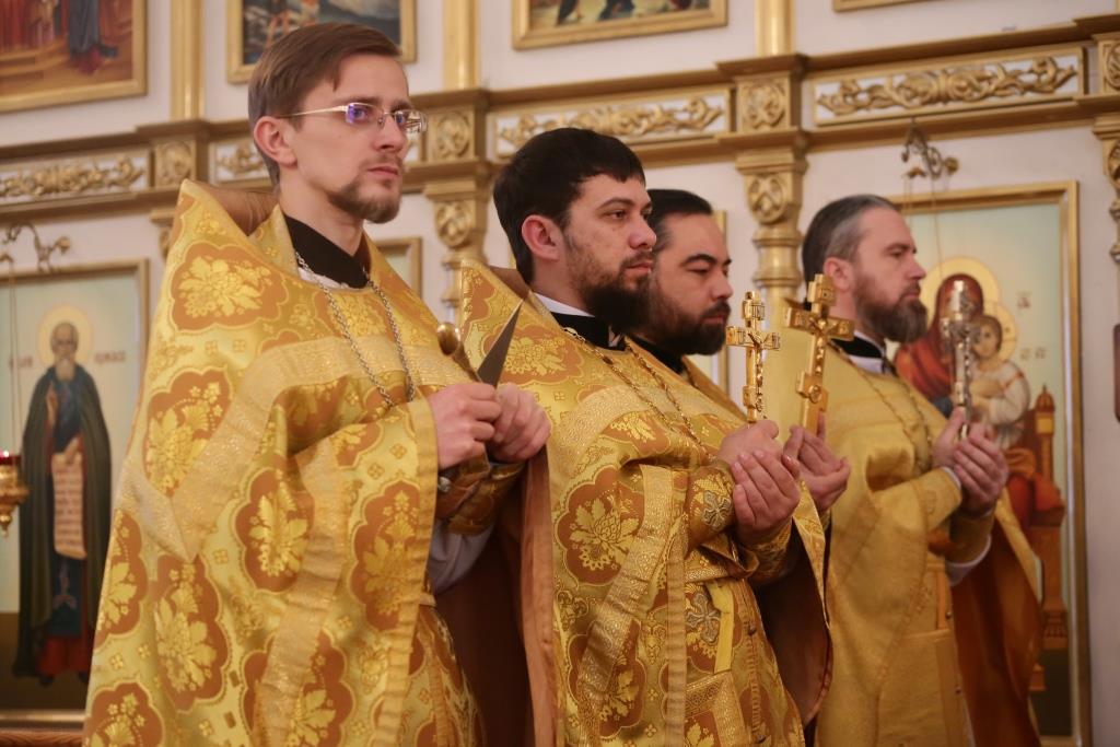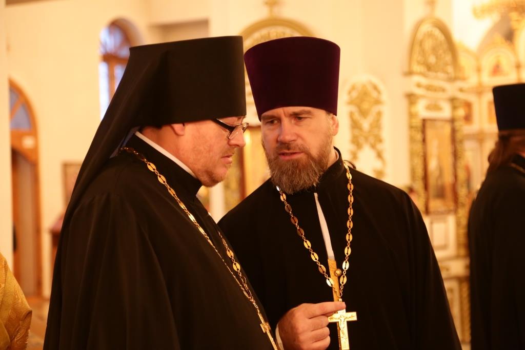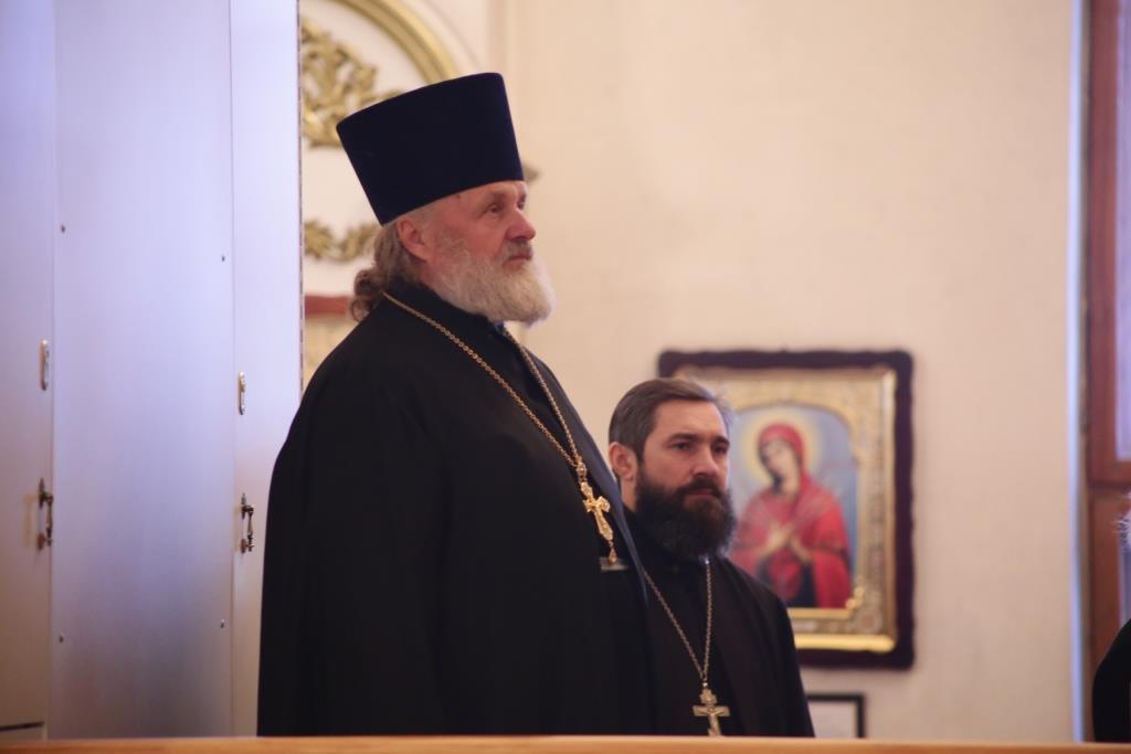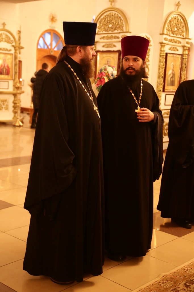 Преосвященному владыке сослужили: духовник Свято-Троицкого Усть-Каменогорского мужского монастыря архимандрит Спиридон (Теплухин), секретарь епархии, настоятель Богородице-Рождественского храма города иерей Евгений Яганов; благочинный Усть-Каменогорского церковного округа, настоятель Покровской церкви столицы Прииртышья иерей Алексий Анищенко; иеромонах Севастиан (Андрющенко), ключарь Андреевского собора иеромонах Никодим (Авдеев), председатель Епархиальной комиссии по делам молодёжи иерей Вячеслав Гутов, секретарь Управляющего Усть-Каменогорской епархией иеромонах Силуан (Магилев), заведующий канцелярией Усть-Каменогорского епархиального управления иерей Константин Дьяков; протодиакон Георгий Засыпкин, протодиакон Андрей Дудник и диакон Георгий Сухобокий.