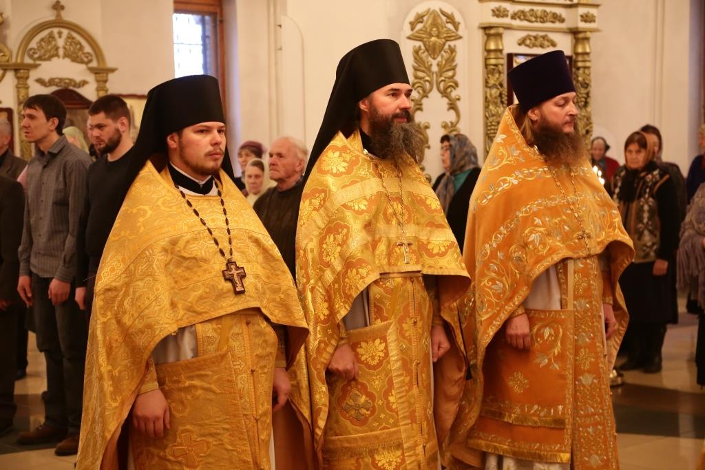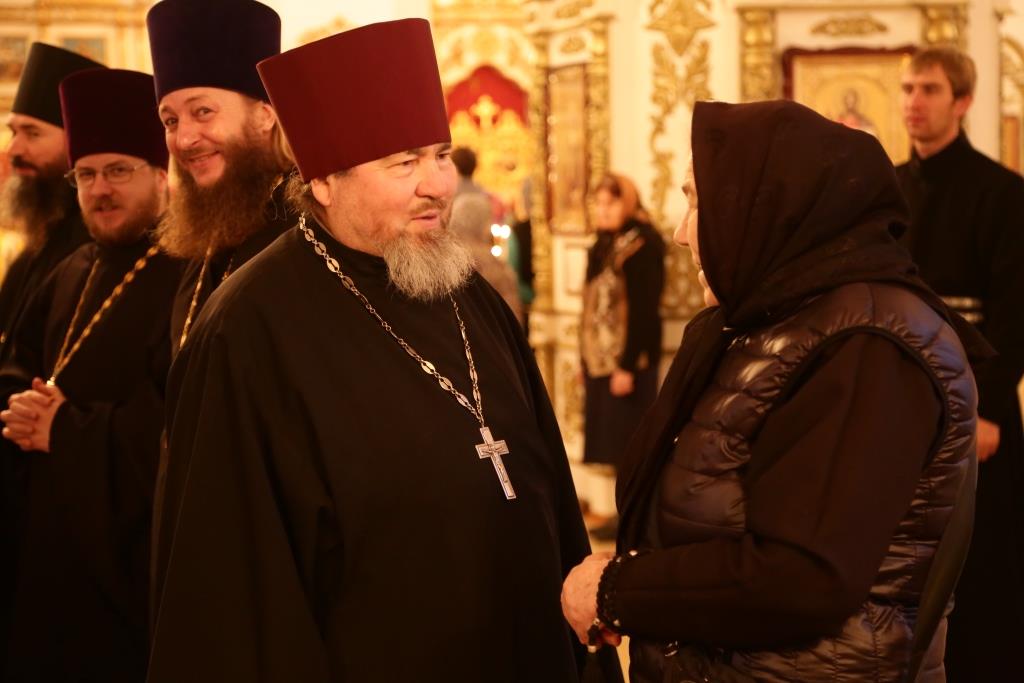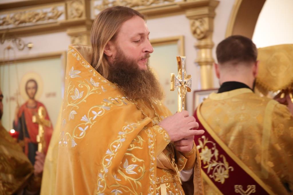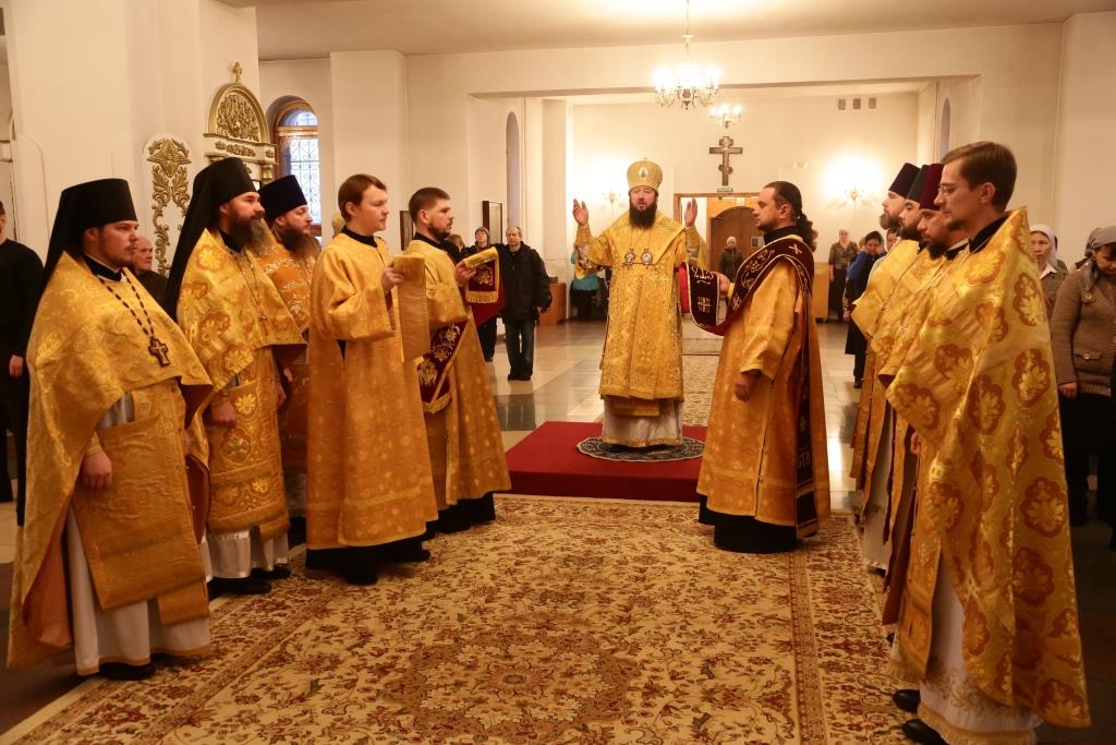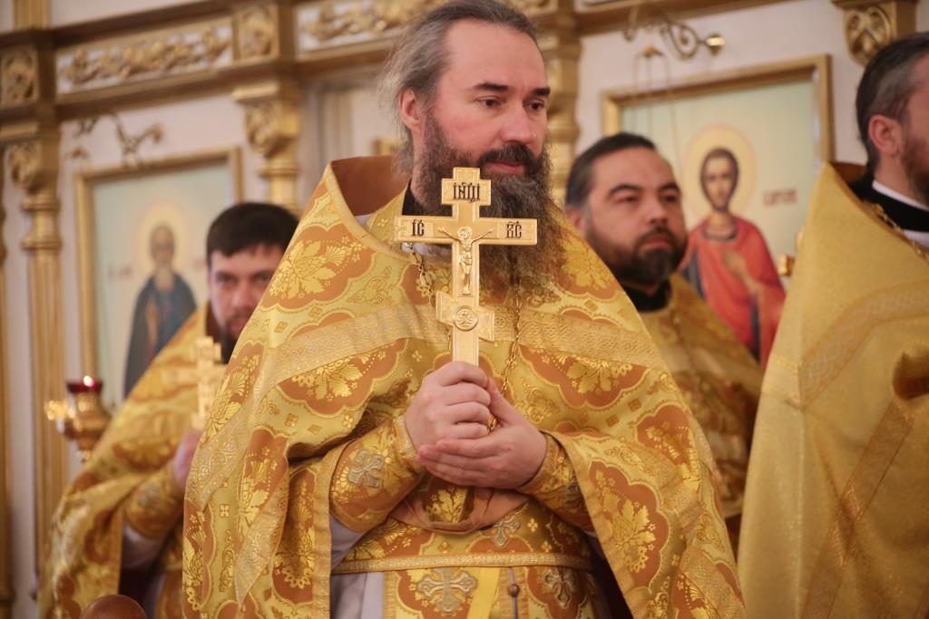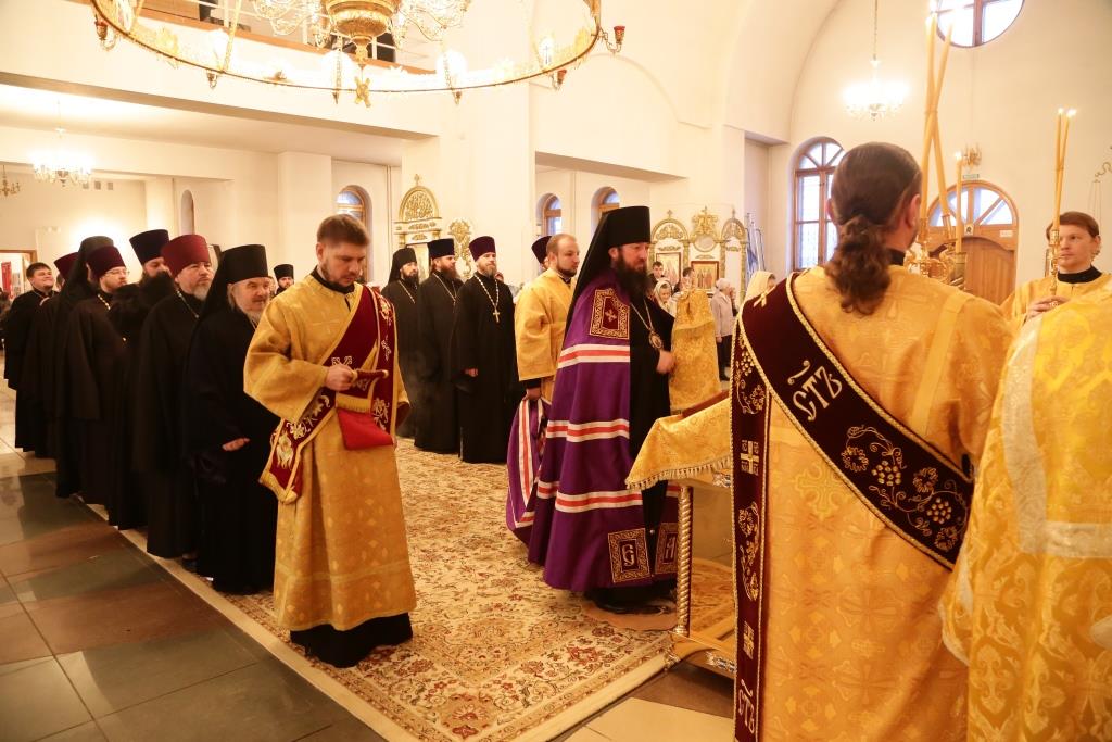 Преосвященному владыке сослужили: духовник Свято-Троицкого Усть-Каменогорского мужского монастыря архимандрит Спиридон (Теплухин), секретарь епархии, настоятель Богородице-Рождественского храма города иерей Евгений Яганов; благочинный Усть-Каменогорского церковного округа, настоятель Покровской церкви столицы Прииртышья иерей Алексий Анищенко; иеромонах Севастиан (Андрющенко), ключарь Андреевского собора иеромонах Никодим (Авдеев), председатель Епархиальной комиссии по делам молодёжи иерей Вячеслав Гутов, секретарь Управляющего Усть-Каменогорской епархией иеромонах Силуан (Магилев), заведующий канцелярией Усть-Каменогорского епархиального управления иерей Константин Дьяков; протодиакон Георгий Засыпкин, протодиакон Андрей Дудник и диакон Георгий Сухобокий.