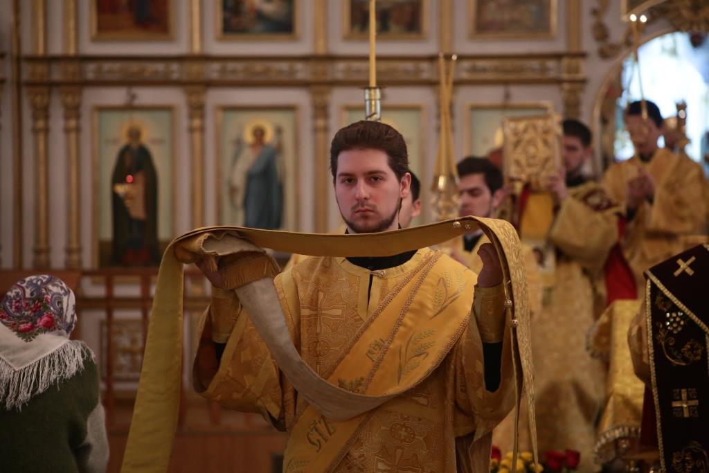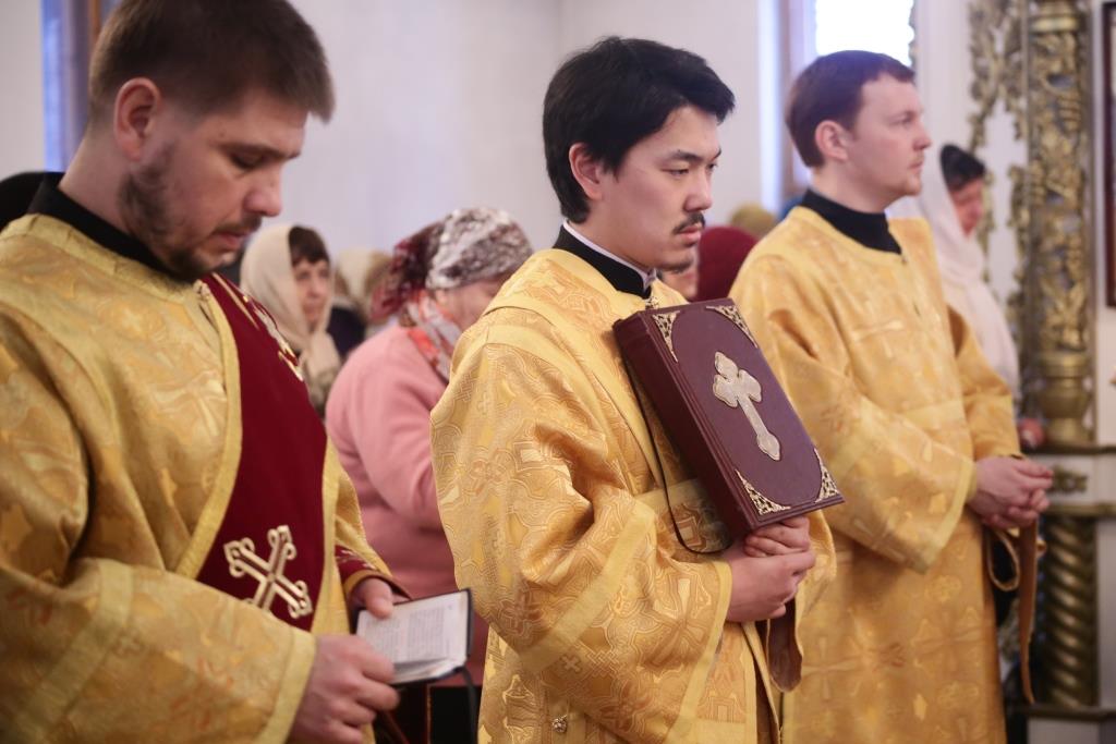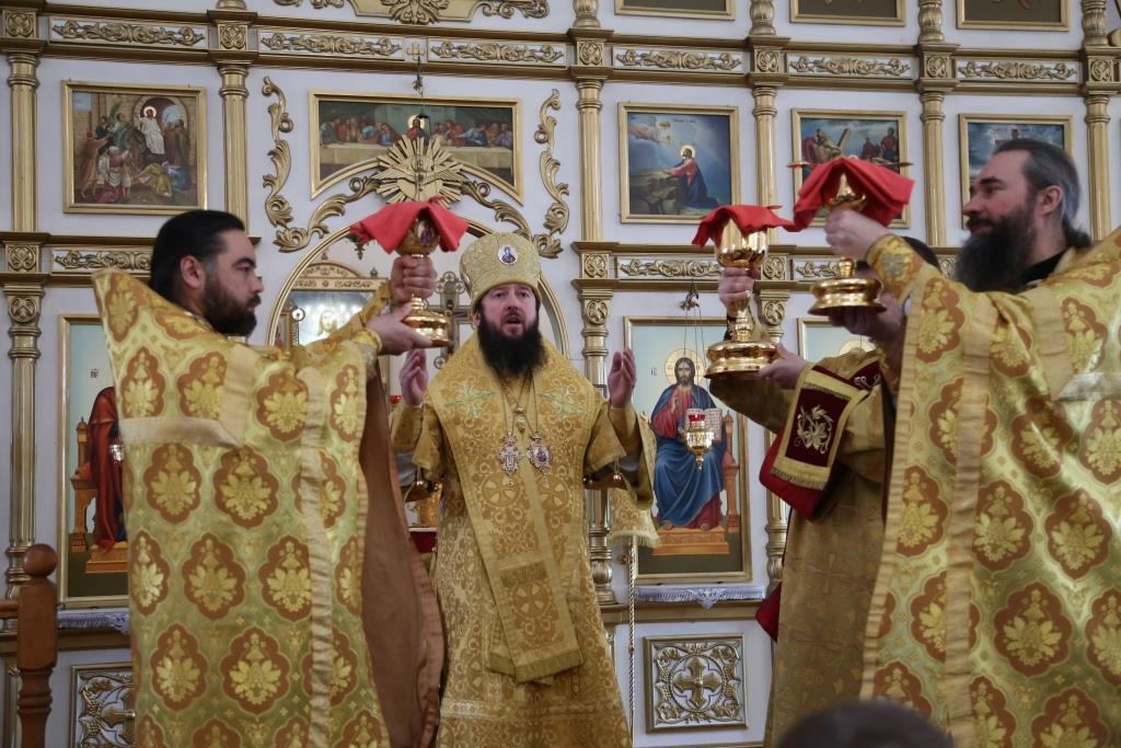 Его Преосвященству сослужили: духовник Свято-Троицкого Усть-Каменогорского мужского монастыря архимандрит Спиридон (Теплухин), ключарь Андреевского собора иеромонах Никодим (Авдеев), секретарь Управляющего Усть-Каменогорской епархией иеромонах Силуан (Магилев), иеромонах Севастиан (Андрющенко), иерей Алексий Клепиков; протодиакон Георгий Засыпкин, протодиакон Андрей Дудник, иеродиакон Мефодий (Шевчук), диакон Георгий Сухобокий.