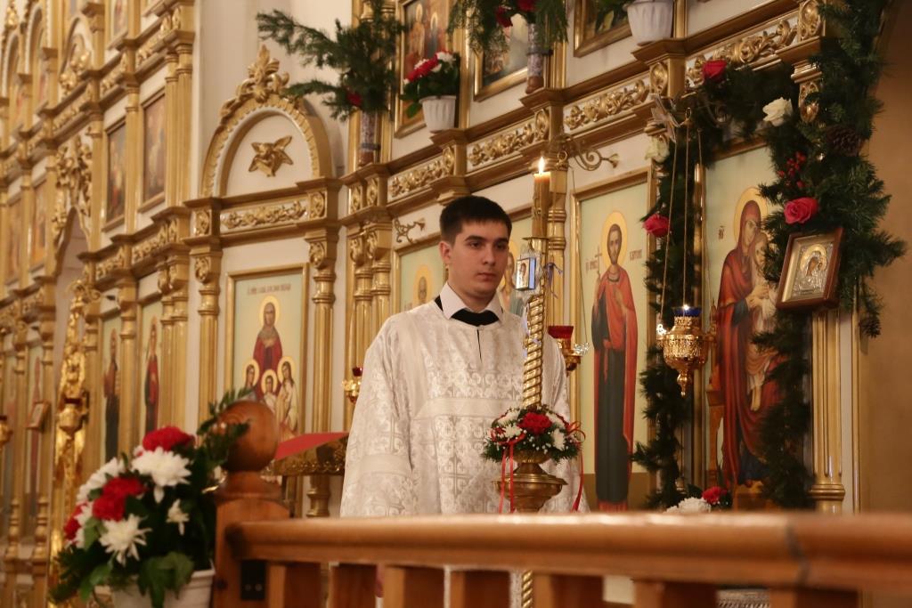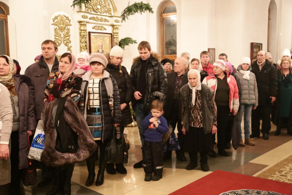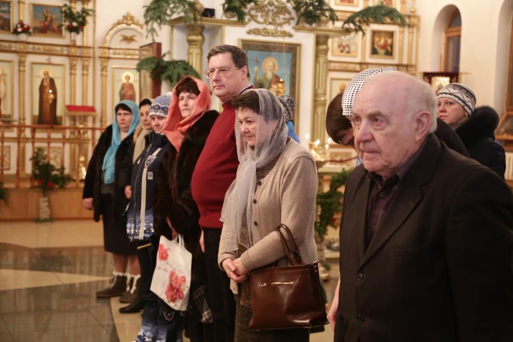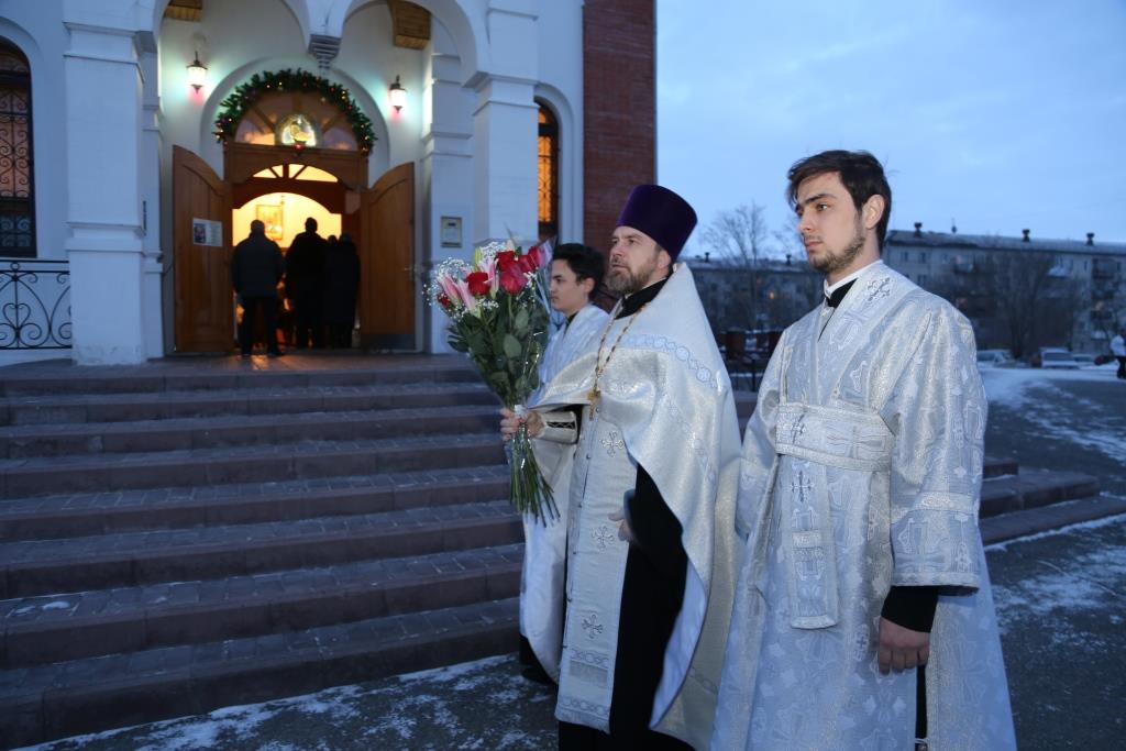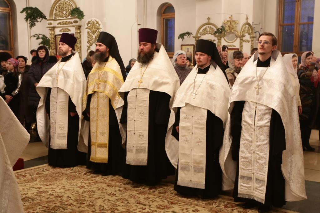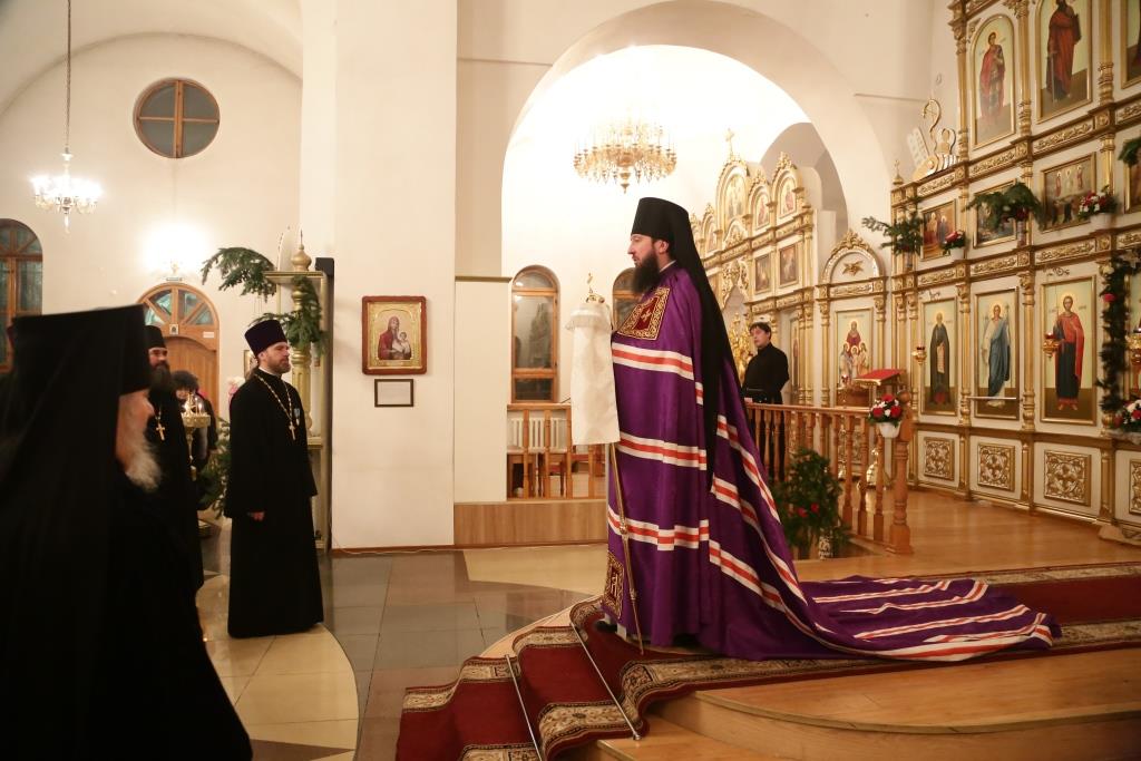 Его Преосвященству сослужили: духовник Свято-Троицкого Усть-Каменогорского мужского монастыря архимандрит Спиридон (Теплухин), секретарь епархии иерей Евгений Яганов, благочинный Усть-Каменогорского церковного округа иерей Алексий Анищенко, настоятели и духовенство храмов столицы Прииртышья, руководители епархиальных отделов в священном сане. Среди молившихся был Генеральный Консул Российской Федерации в Усть-Каменогорске С.В. Анненков с супругой.