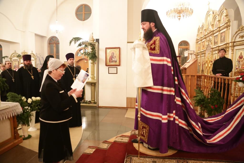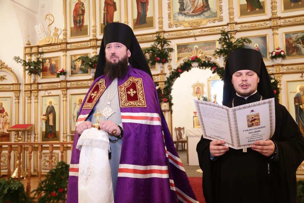 По окончании богослужения секретарь Управляющего епархией иеромонах Силуан (Магилев) огласил Рождественское послание епископа Амфилохия духовенству, монашествующим и боголюбивой пастве Усть-Каменогорской и Семипалатинской епархии.