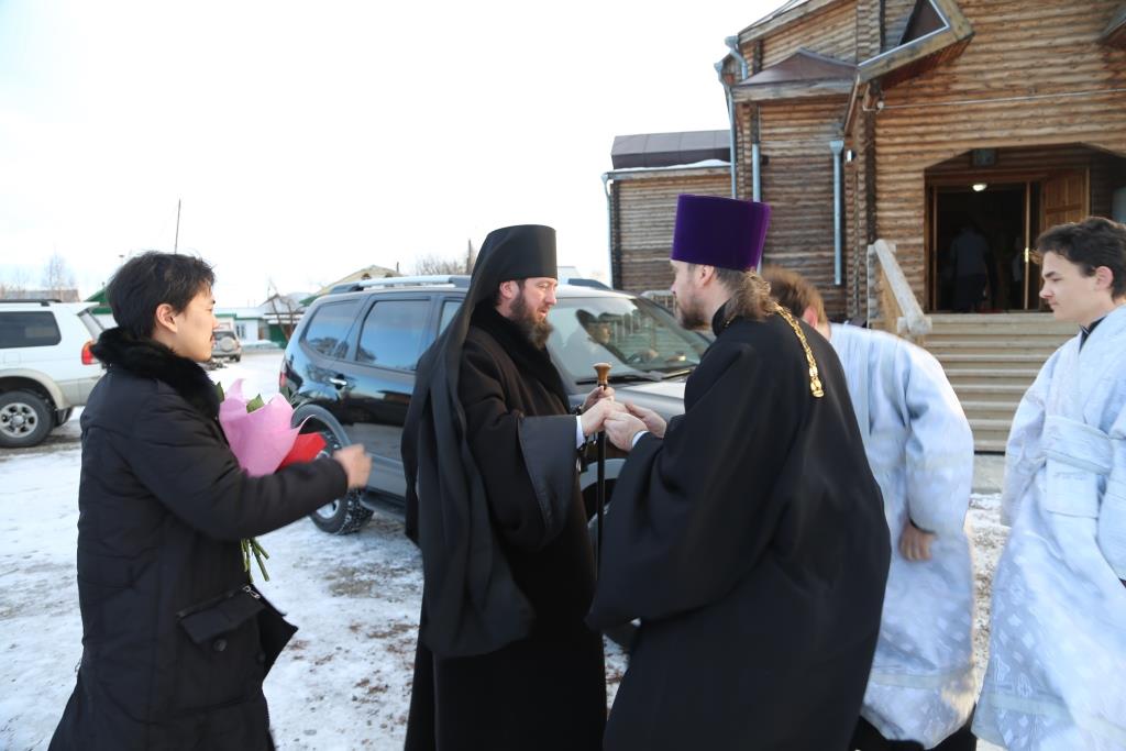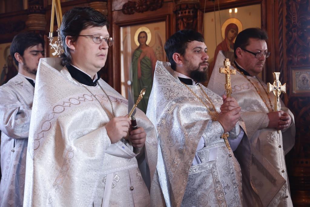 Владыке Амфилохию сослужили: духовник Свято-Троицкого Усть-Каменогорского мужского монастыря архимандрит Спиридон (Теплухин), благочинный Усть-Каменогорского церковного округа, настоятель церкви иерей Алексий Анищенко; клирик храма иеромонах Иустин (Ларионов), председатель Епархиальной комиссии по делам молодёжи иерей Вячеслав Гутов, иерей Роман Подрезов; протодиакон Андрей Дудник, диакон Александр Якушев, диакон Георгий Гуцалов.