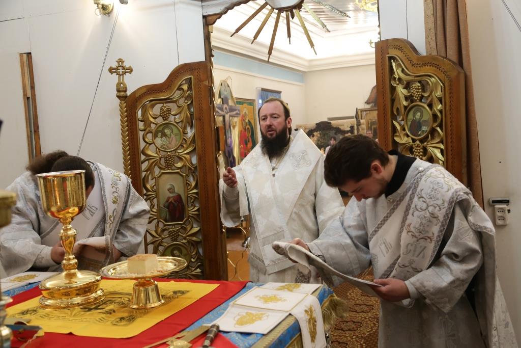 Владыке Амфилохию сослужили: духовник Свято-Троицкого Усть-Каменогорского мужского монастыря архимандрит Спиридон (Теплухин), секретарь Усть-Каменогорской епархии, настоятель храма иерей Евгений Яганов, секретарь Управляющего епархией иеромонах Силуан (Магилев); клирики Андреевского кафедрального собора протодиакон Андрей Дудник и иеродиакон Мефодий (Шевчук).