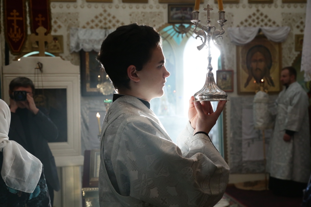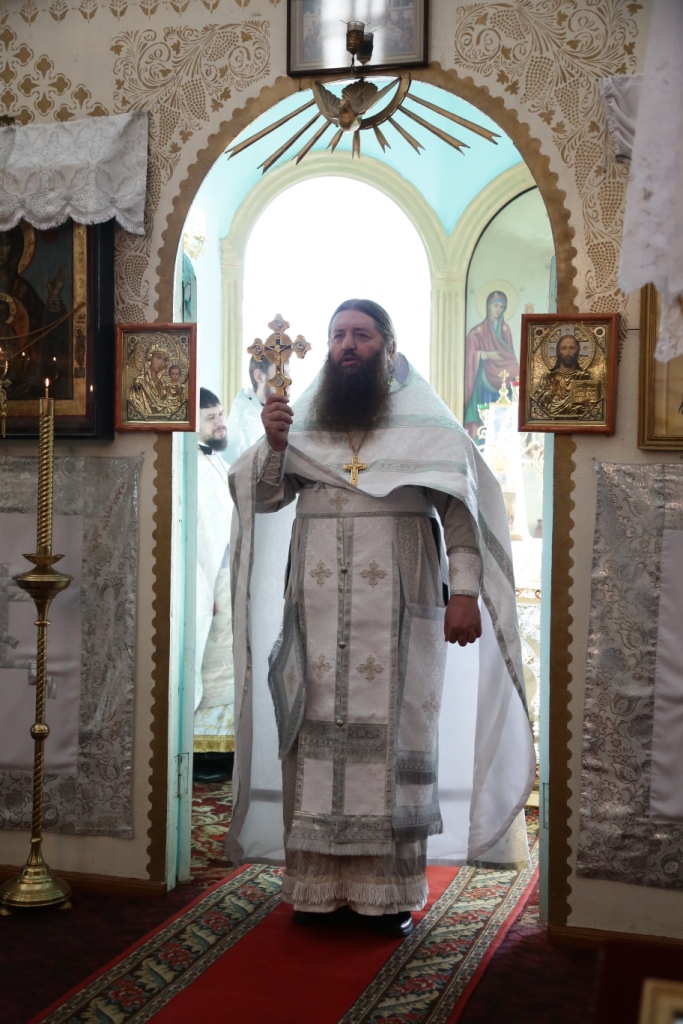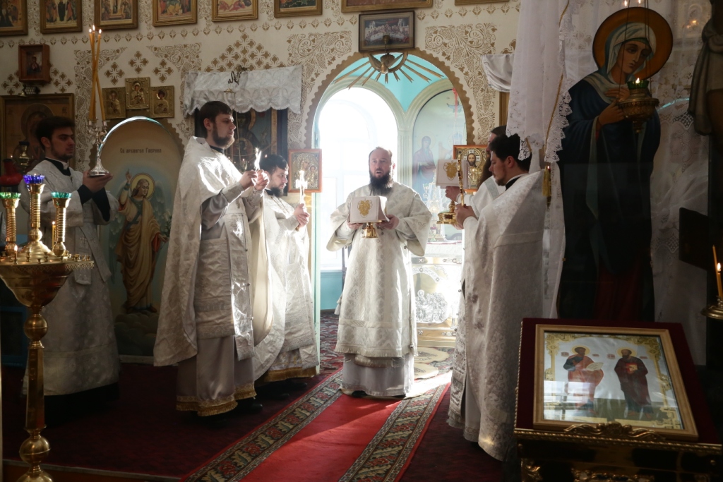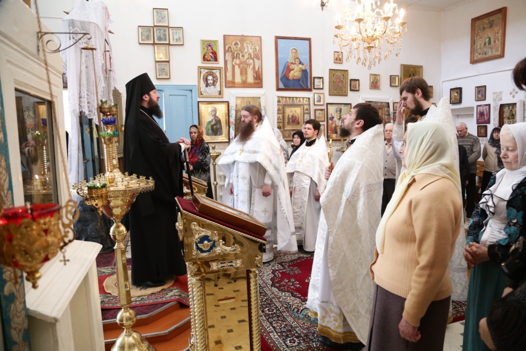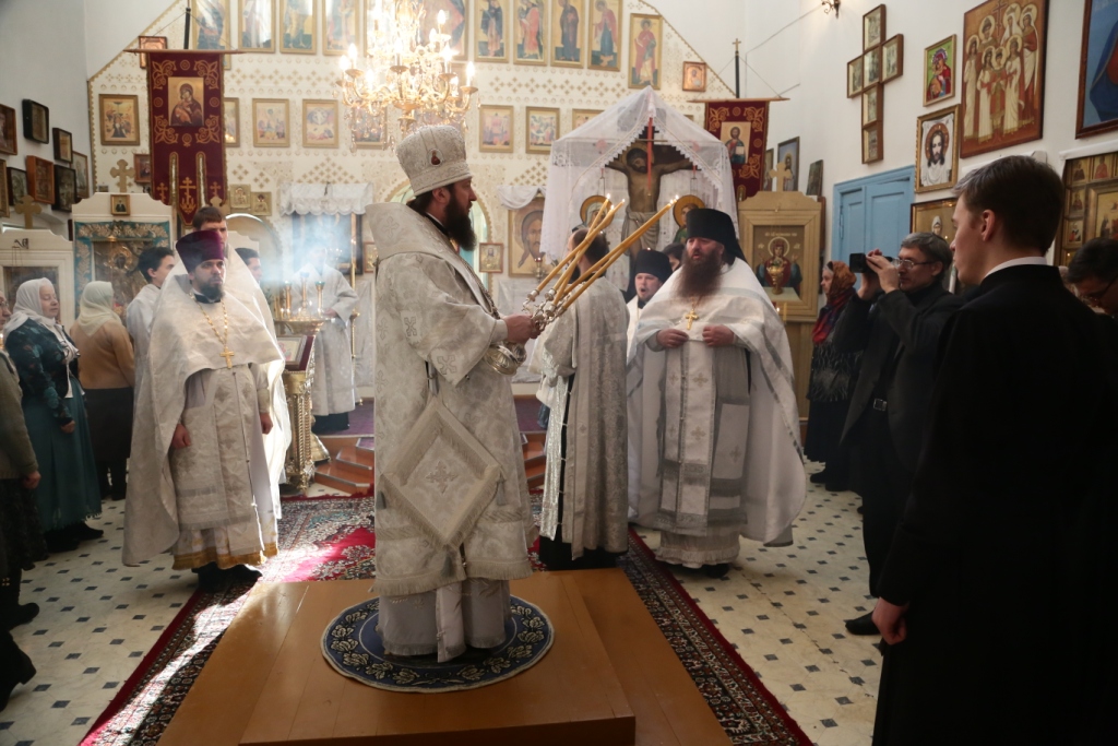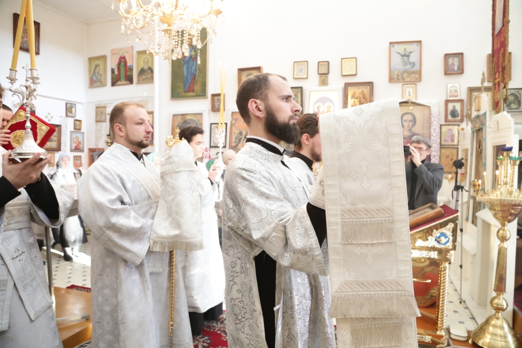 Его Преосвященству сослужили: духовник монастыря игумен Аникита (Макаров), председатель Епархиальной комиссии по делам молодёжи иерей Вячеслав Гутов, секретарь Управляющего Усть-Каменогорской епархией иеромонах Силуан (Магилев), клирик Воскресенского кафедрального собора г. Семипалатинска иерей Евгений Потылицын; протодиакон Андрей Дудник, иеродиакон Мефодий (Шевчук).