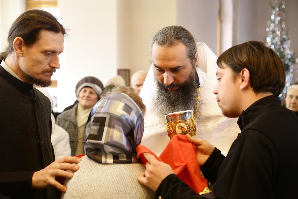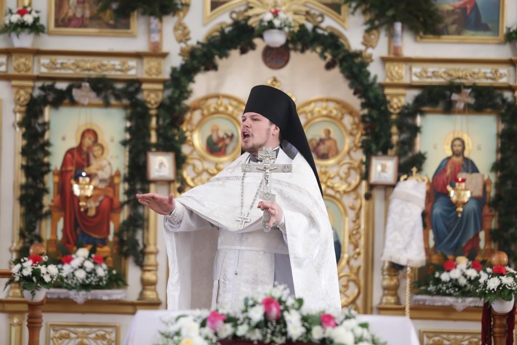 Проповедь после запричастного стиха произнёс иеромонах Силуан (Магилев).