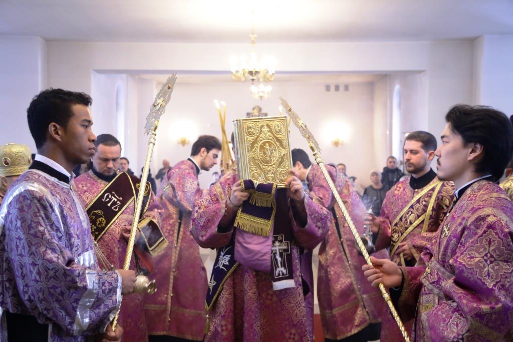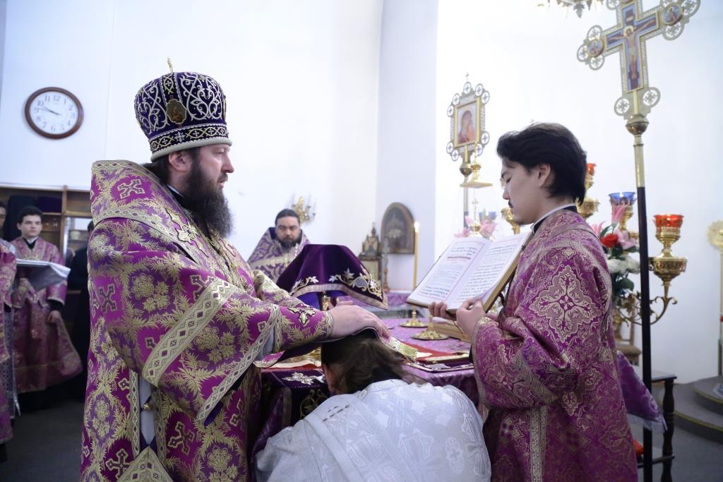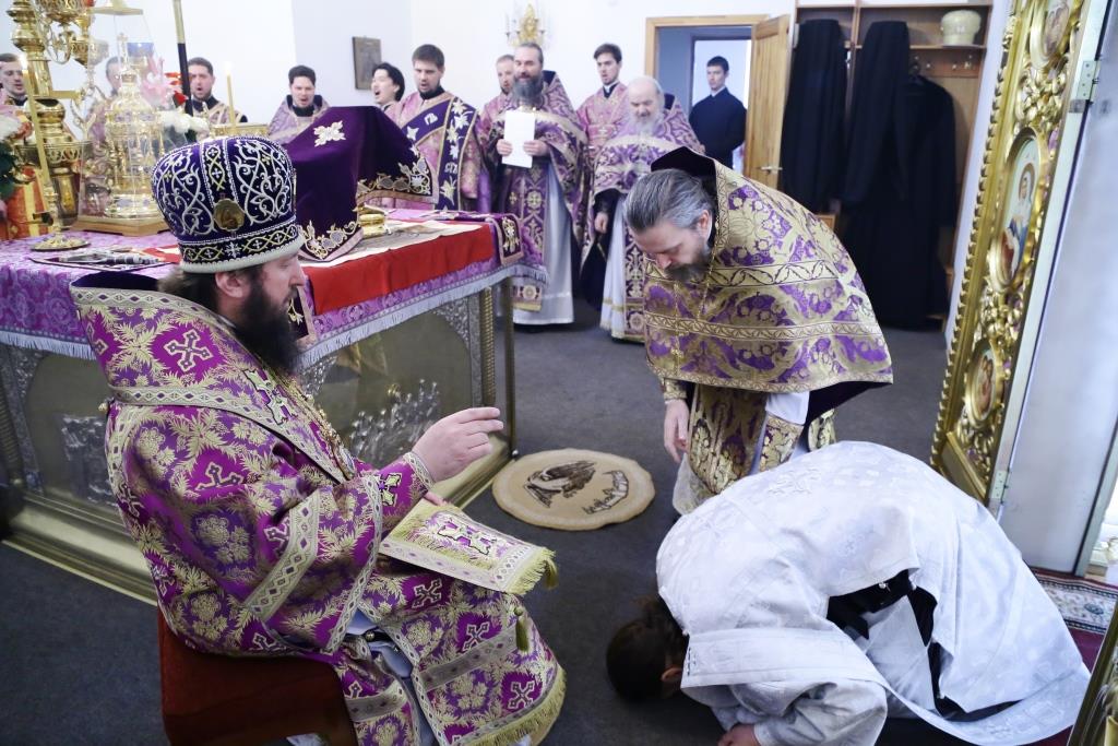 За Литургией Преосвященный Амфилохий рукоположил диакона Георгия Гуцалова, клирика Покровской церкви в Усть-Каменогорске, во пресвитера.
