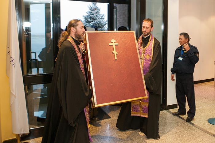 По окончании богослужения митрополит Александр поздравил собравшихся с великим и знаменательным событием – принесением в Южную столицу Казахстана чудотворной Феодоровской иконы Божией Матери.