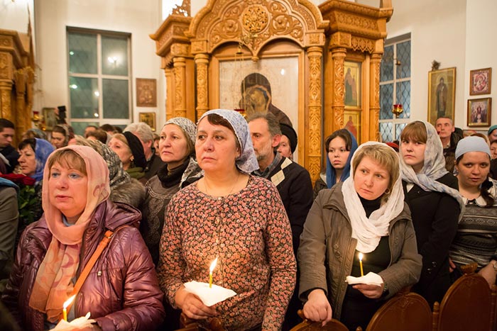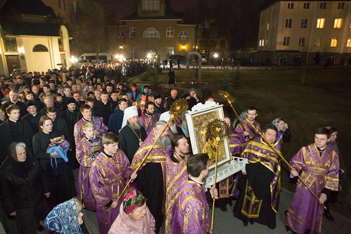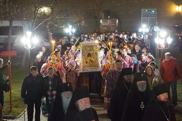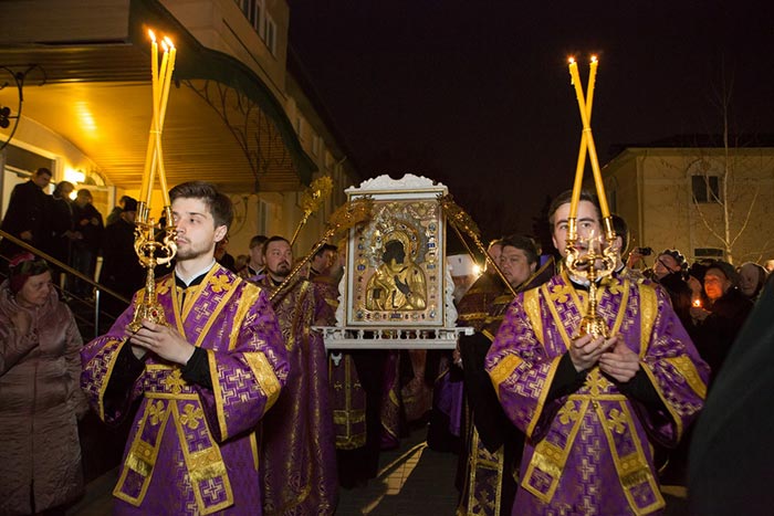 На протяжении вечернего и ночного времени в Софийском соборе перед киотом с чудотворным образом непрерывно совершались молебны и происходило поклонение верующих.