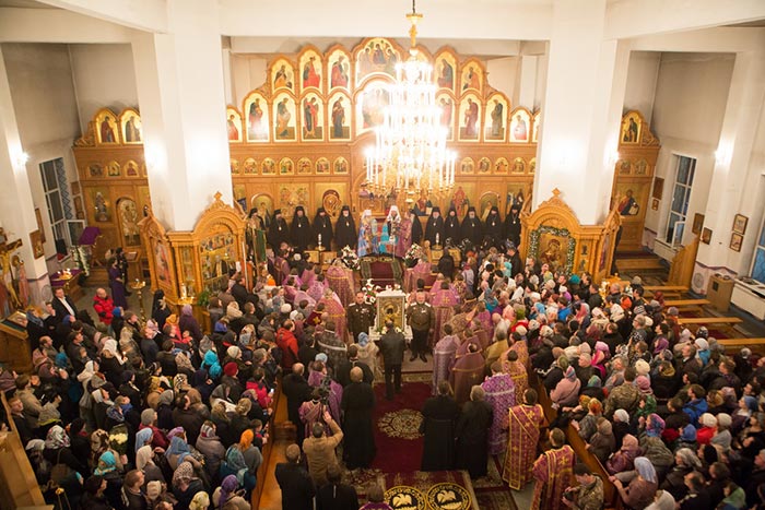 За богослужением молились: настоятельница Иверско-Серафимовского женского монастыря Алма-Аты игумения Любовь (Якушкина) с сестрами обители; сотрудники Алма-Атинского епархиального управления; казачество; студенты Алма-Атинской Православной Духовной семинарии; благотворители епархии; учащиеся воскресных школ алма-атинских приходов. Почтить великую святыню Православия собрались многочисленные верующие.
