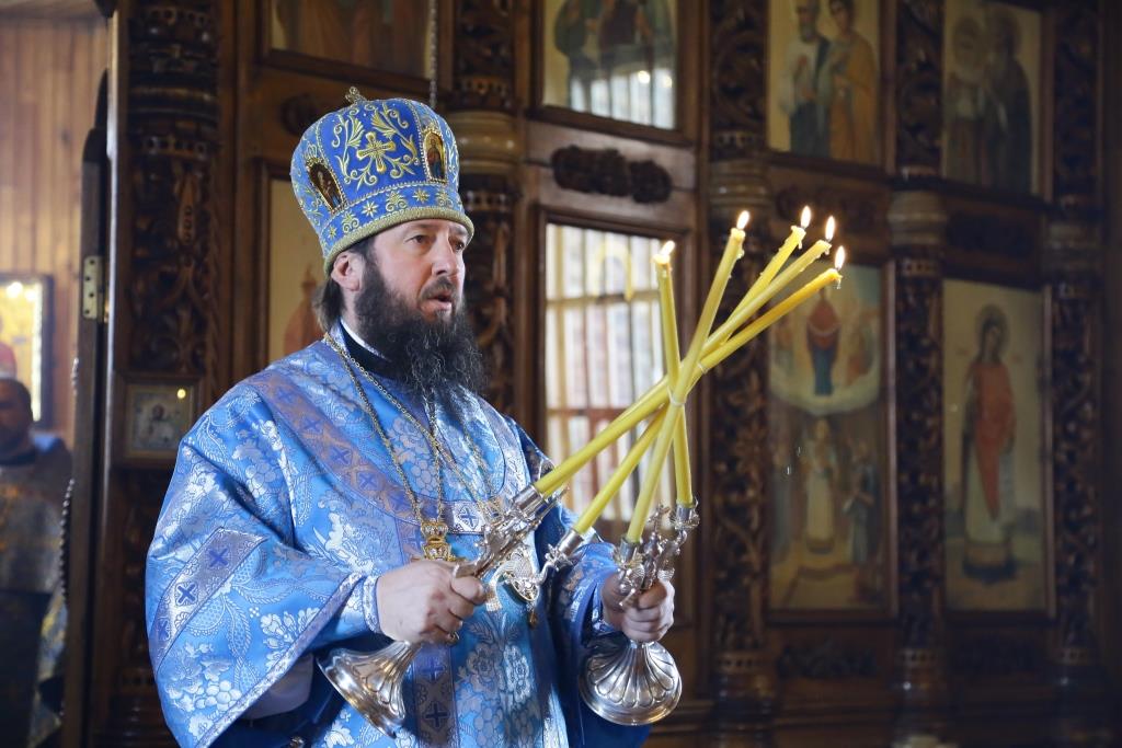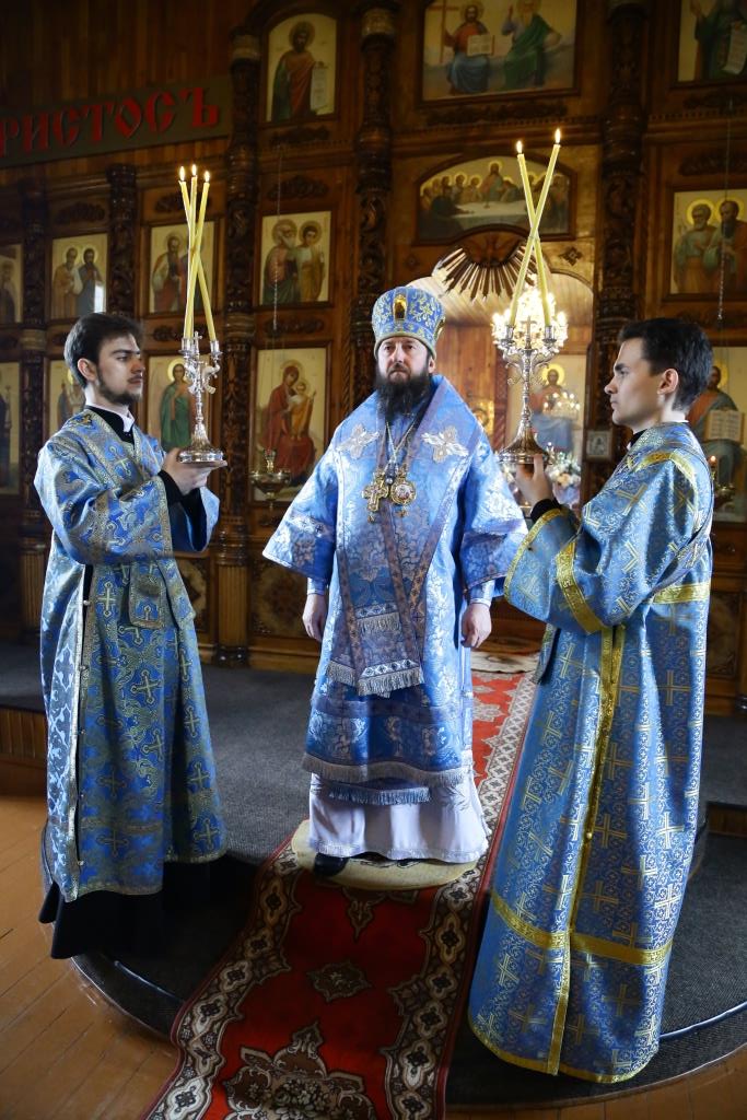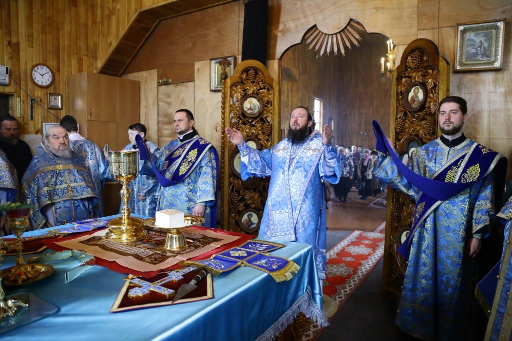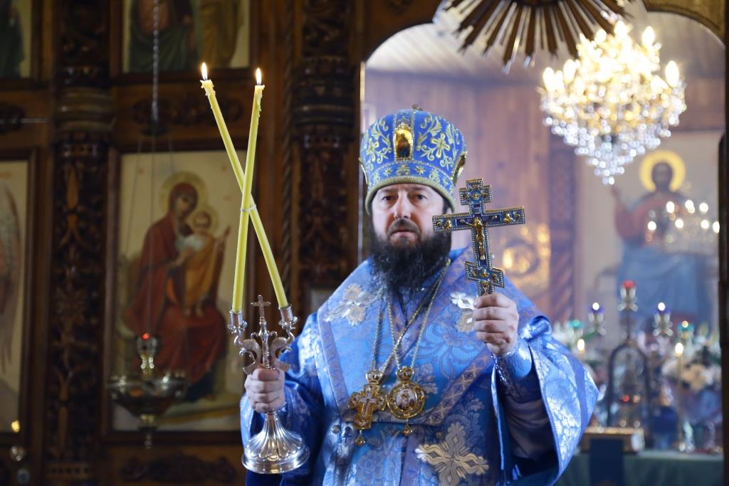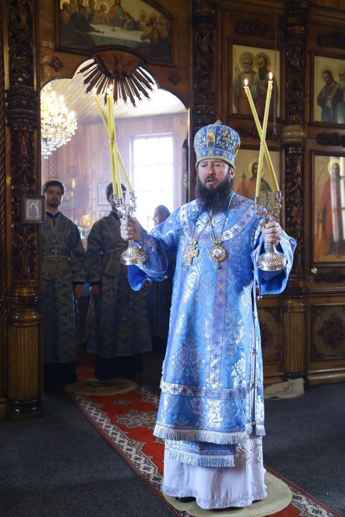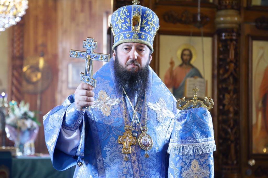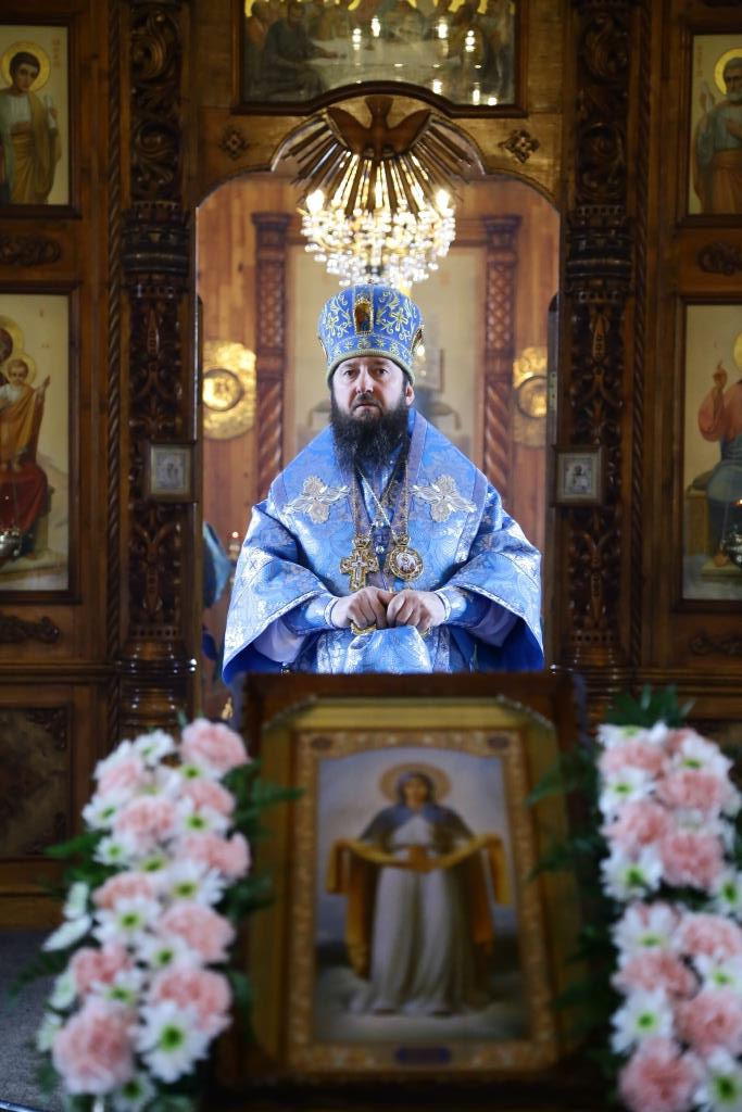Литургия завершилась славлением Божией Матери, по окончании которого владыка Амфилохий поздравил отца настоятеля, священнослужителей и мирян с праздником Похвалы Пресвятой Богородицы и обратился к собравшимся с проповедью.