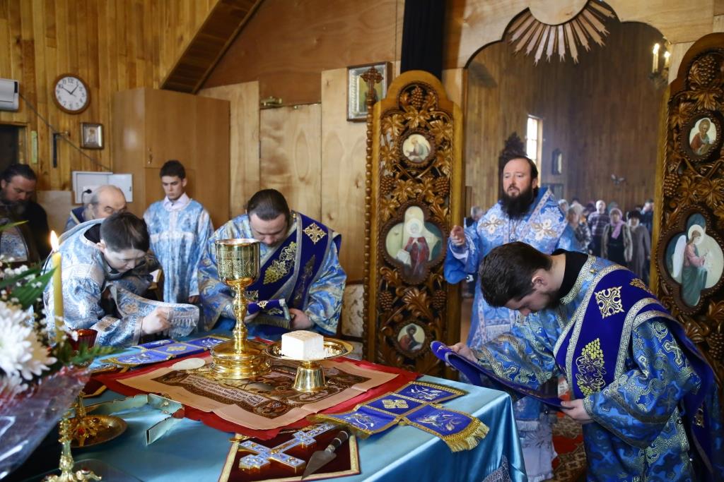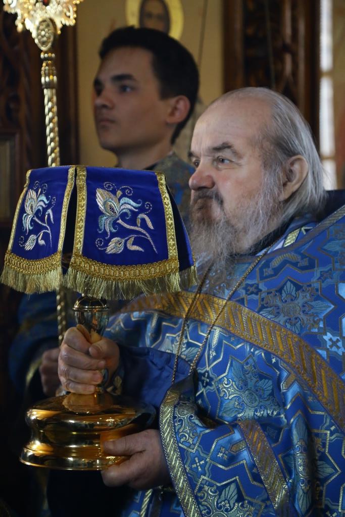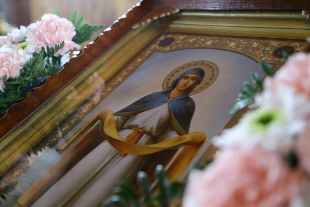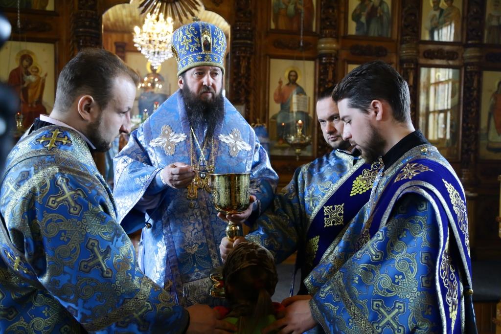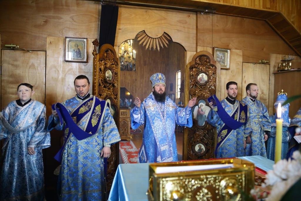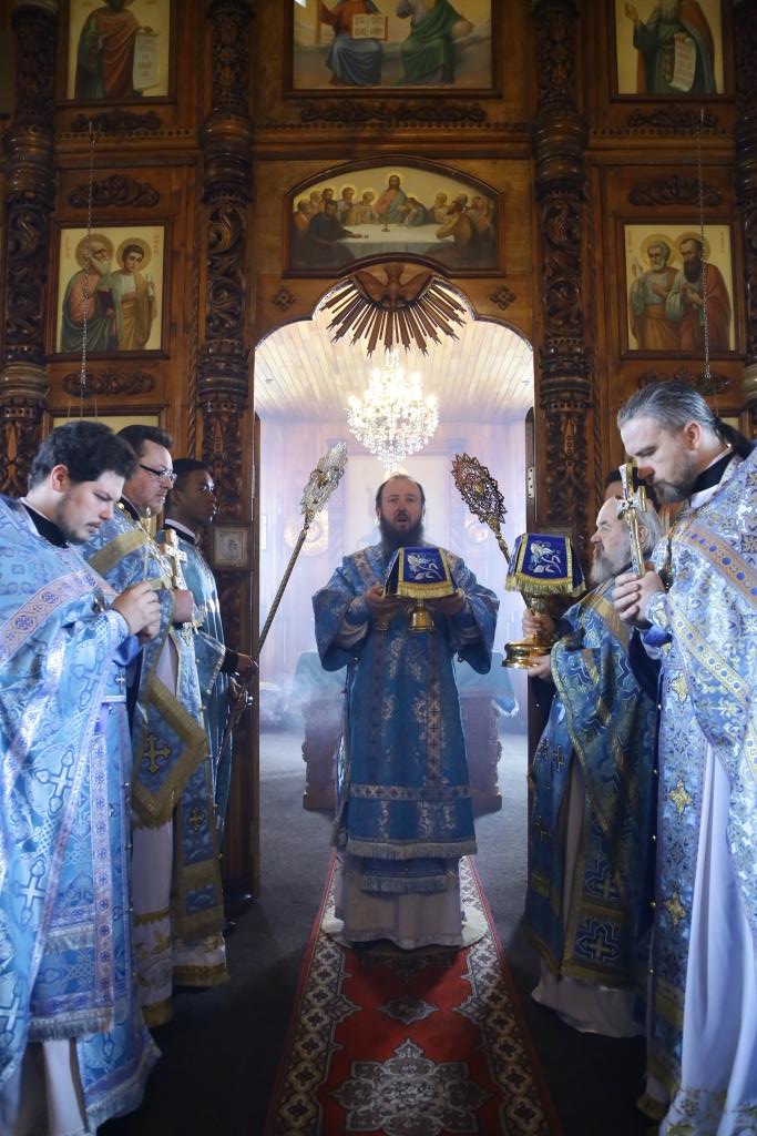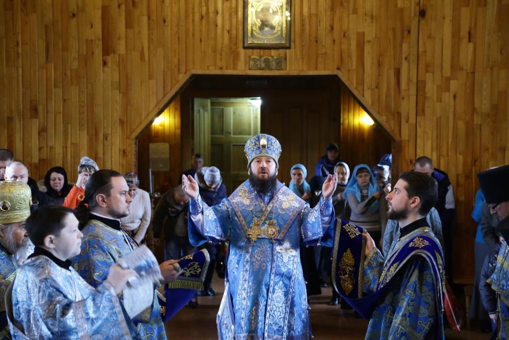 Литургия завершилась славлением Божией Матери, по окончании которого владыка Амфилохий поздравил отца настоятеля, священнослужителей и мирян с праздником Похвалы Пресвятой Богородицы и обратился к собравшимся с проповедью.