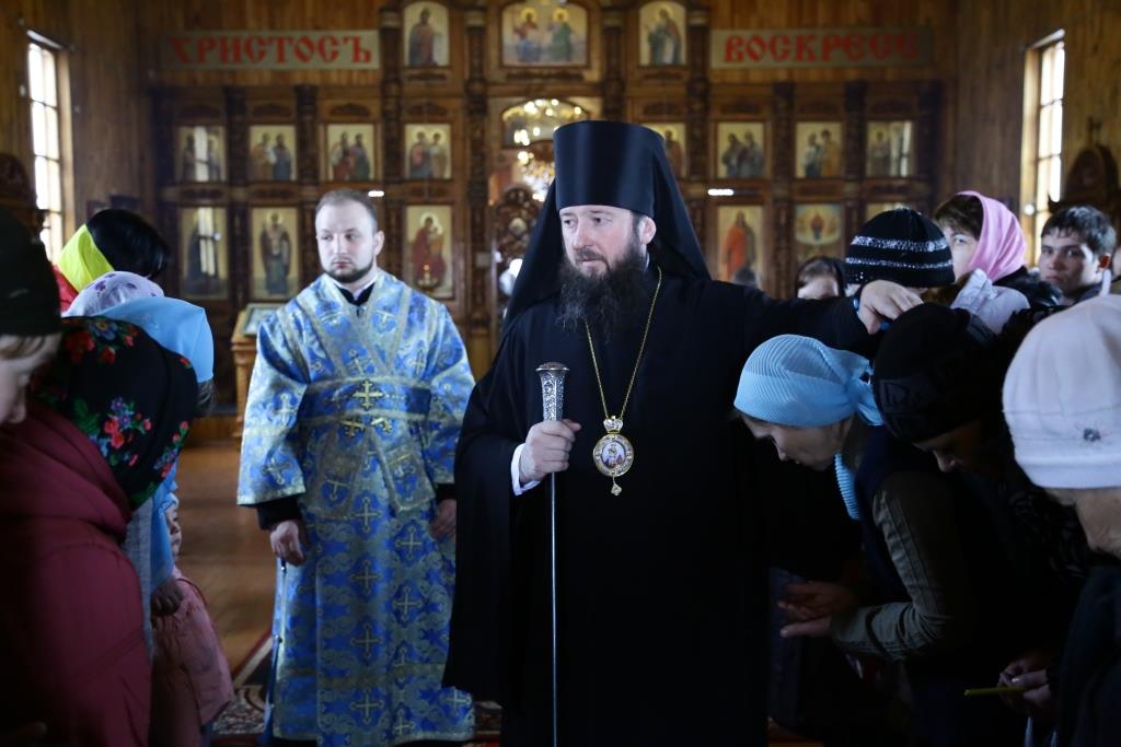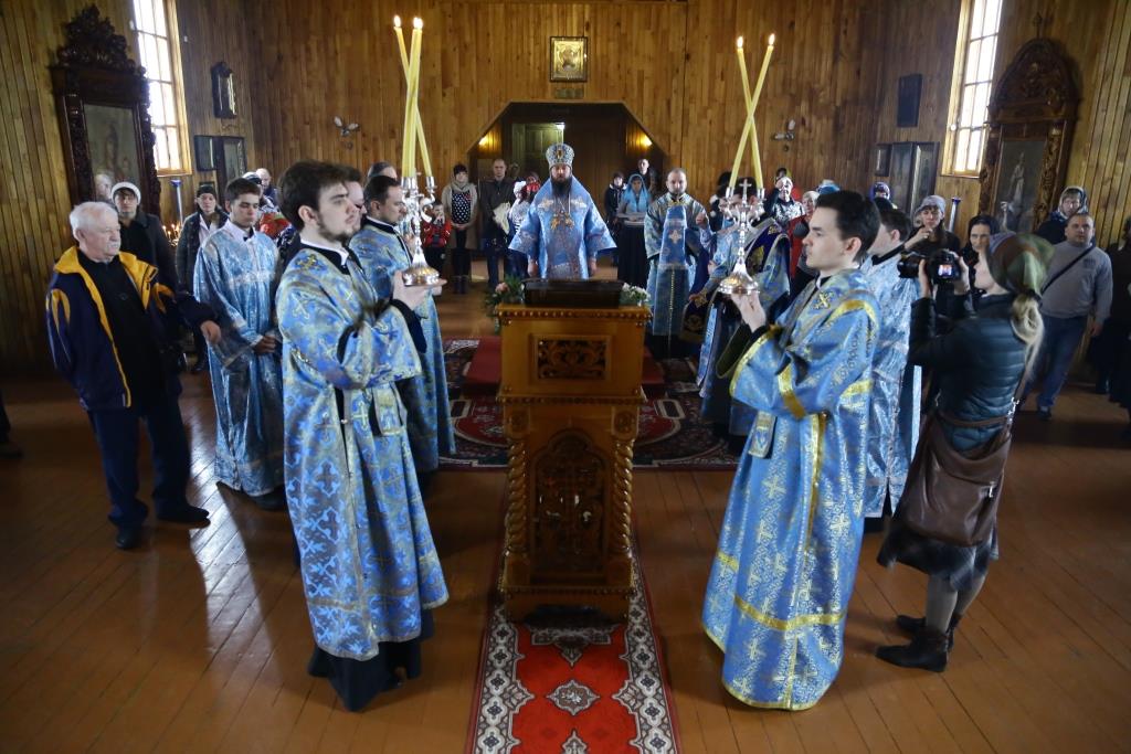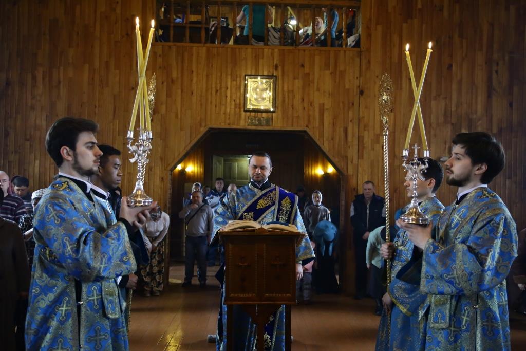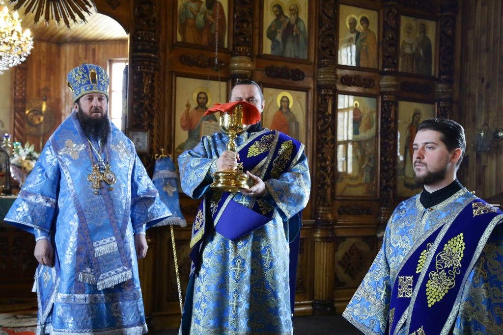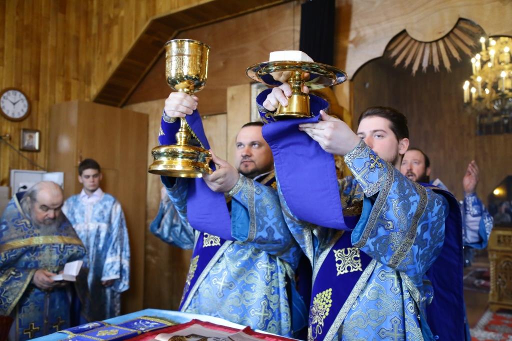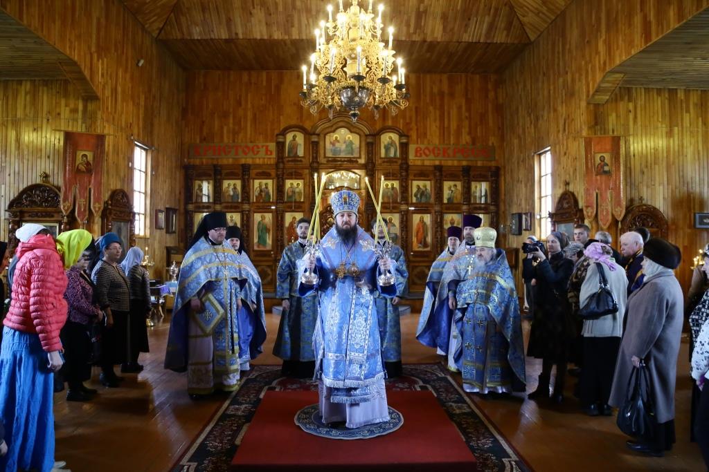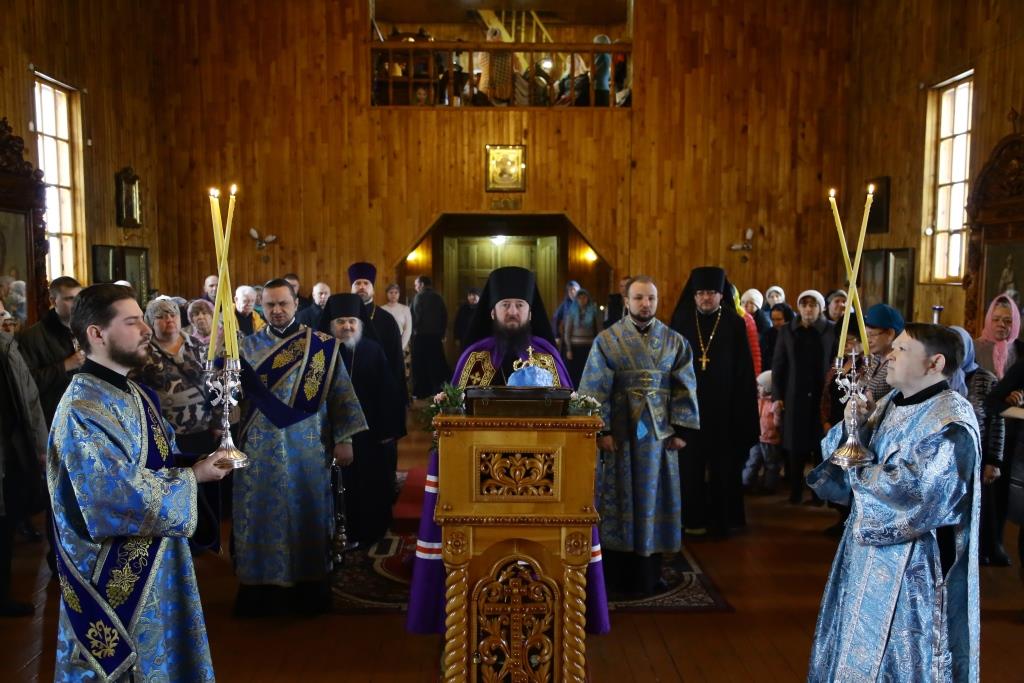 Литургия завершилась славлением Божией Матери, по окончании которого владыка Амфилохий поздравил отца настоятеля, священнослужителей и мирян с праздником Похвалы Пресвятой Богородицы и обратился к собравшимся с проповедью.