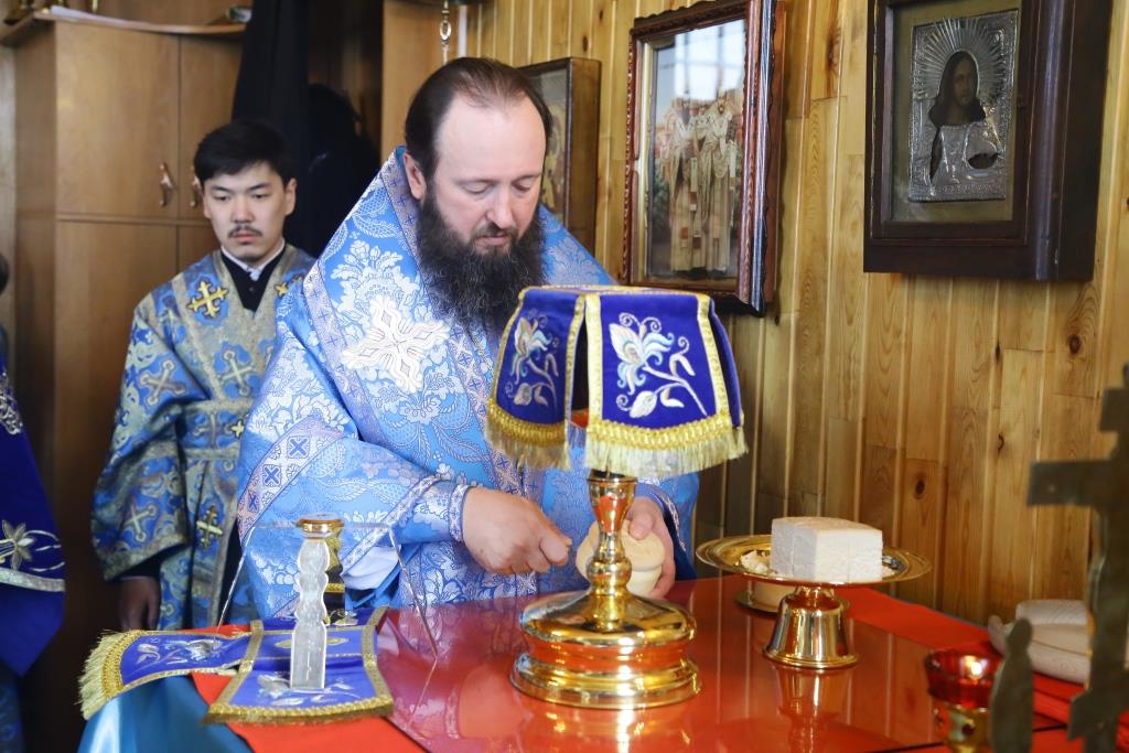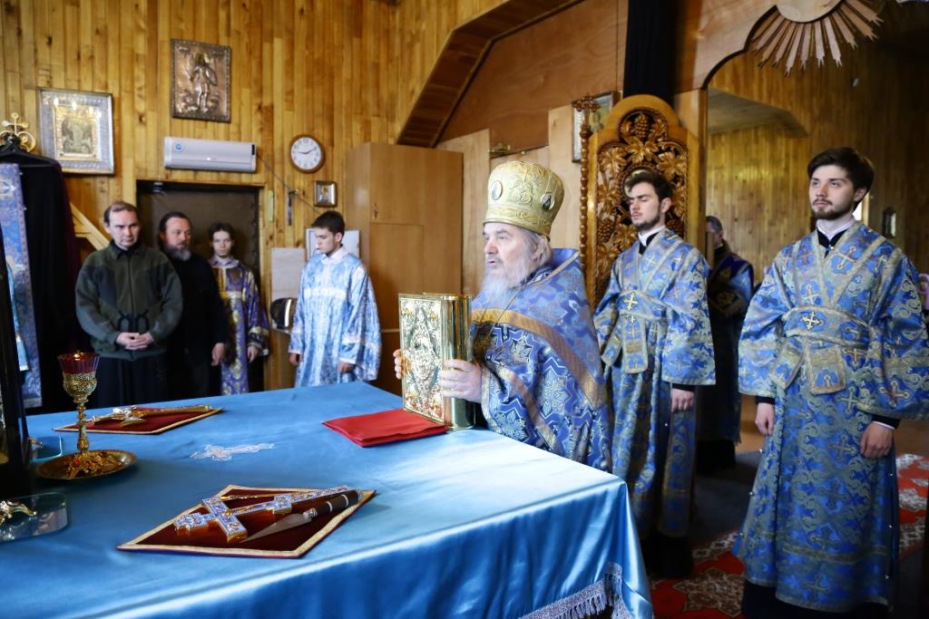 Управляющему епархией сослужили: духовник Усть-Каменогорской епархии архимандрит Спиридон (Теплухин), благочинный Усть-Каменогорского церковного округа, настоятель Покровского прихода иерей Алексий Анищенко; клирик храма иеромонах Иустин (Ларионов), секретарь Управляющего епархией иеромонах Силуан (Магилёв), клирик церкви иерей Роман Подрезов; протодиакон Андрей Дудник, диакон Александр Якушев, иеродиакон Мефодий (Шевчук).