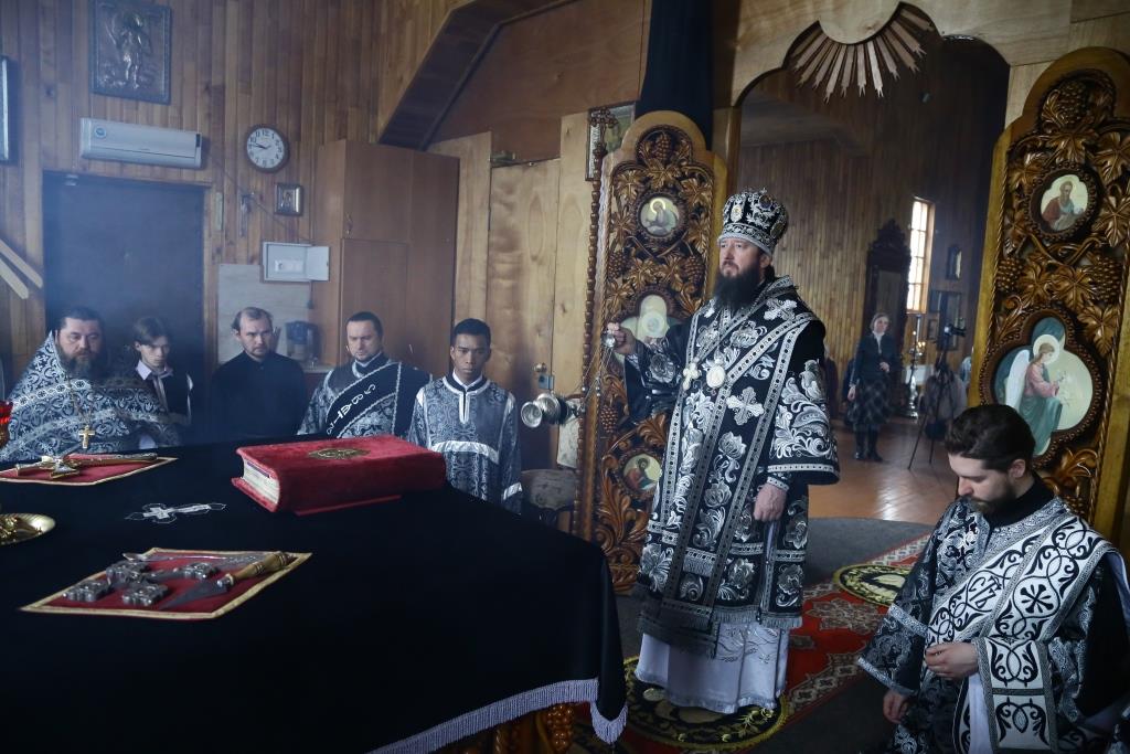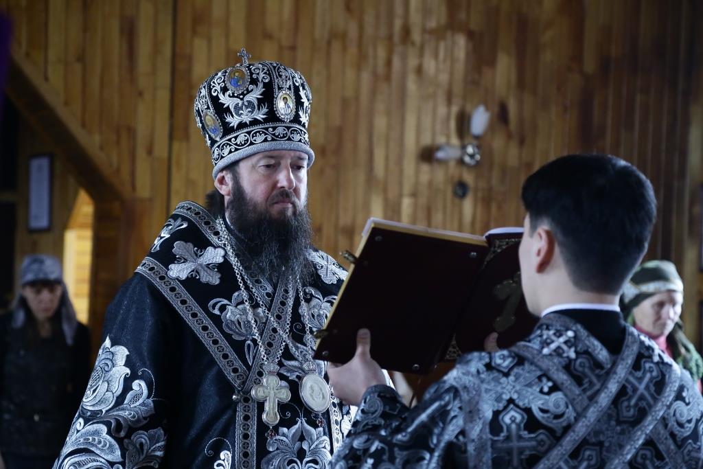 Его Преосвященству сослужили: духовник Усть-Каменогорской епархии архимандрит Спиридон (Теплухин), благочинный Усть-Каменогорского церковного округа, настоятель Покровского прихода иерей Алексий Анищенко; клирик храма иерей Александр Закурдаев, секретарь Управляющего епархией иеромонах Силуан (Магилёв), клирик церкви иерей Роман Подрезов; протодиакон Андрей Дудник, диакон Александр Якушев, иеродиакон Мефодий (Шевчук).