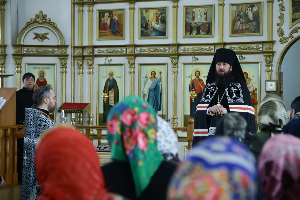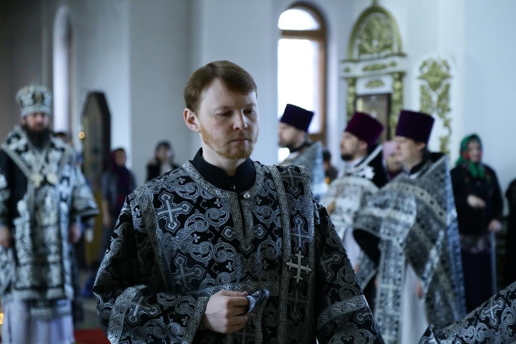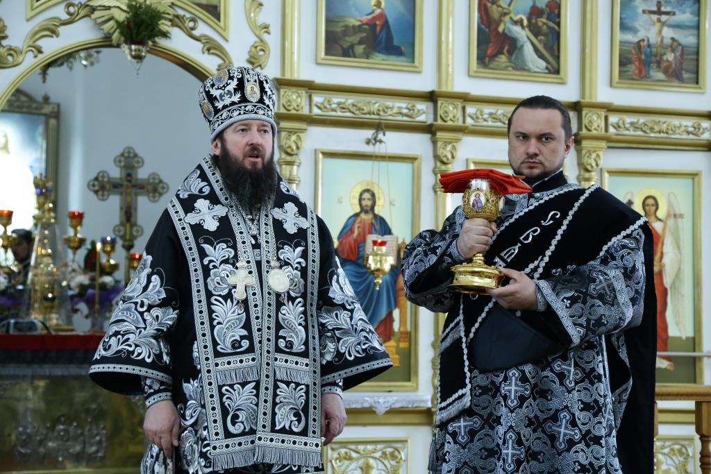 Его Преосвященству сослужили: духовник Усть-Каменогорской епархии архимандрит Спиридон (Теплухин), благочинный Усть-Каменогорского церковного округа иерей Алексий Анищенко, председатель Епархиальной комиссии по делам молодёжи иерей Вячеслав Гутов, секретарь Управляющего епархией иеромонах Силуан (Магилёв), заведующий канцелярией Усть-Каменогорского епархиального управления иерей Константин Дьяков; диаконский чин возглавил протодиакон Андрей Дудник.