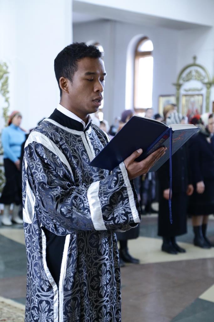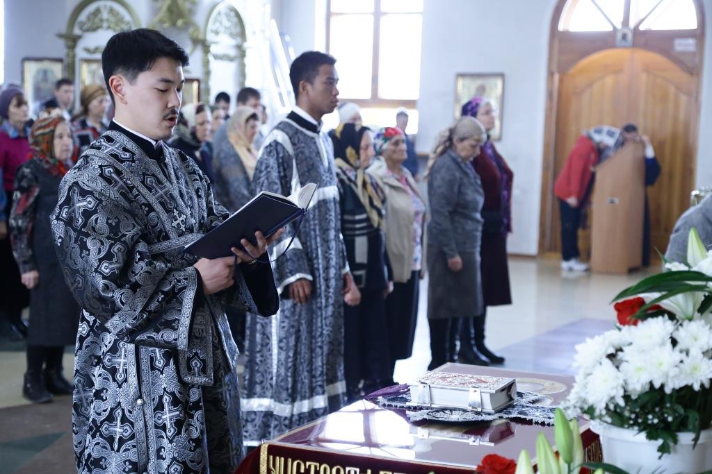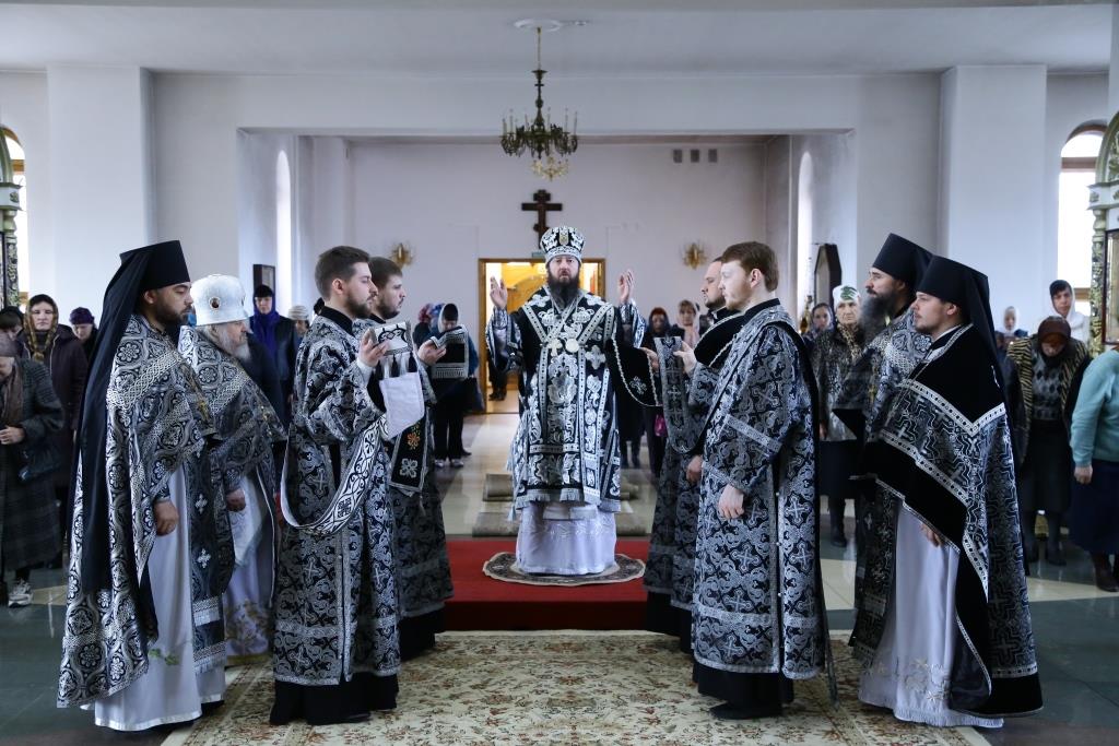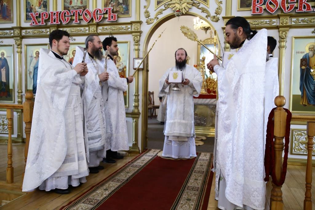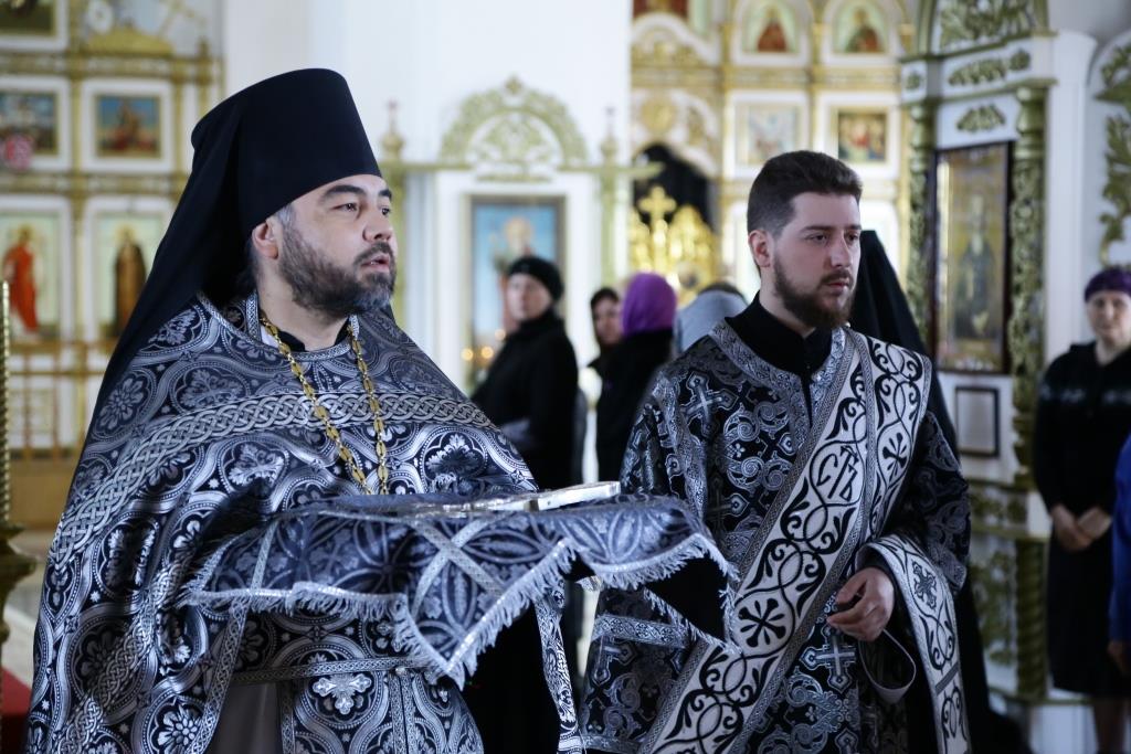 Его Преосвященству сослужили: духовник Усть-Каменогорской епархии архимандрит Спиридон (Теплухин), ключарь Андреевского собора иеромонах Никодим (Авдеев), клирик храма иеромонах Севастиан (Андрющенко), секретарь Управляющего епархией иеромонах Силуан (Магилёв); протодиакон Георгий Засыпкин, протодиакон Андрей Дудник, иеродиакон Мефодий (Шевчук), диакон Георгий Сухобокий.