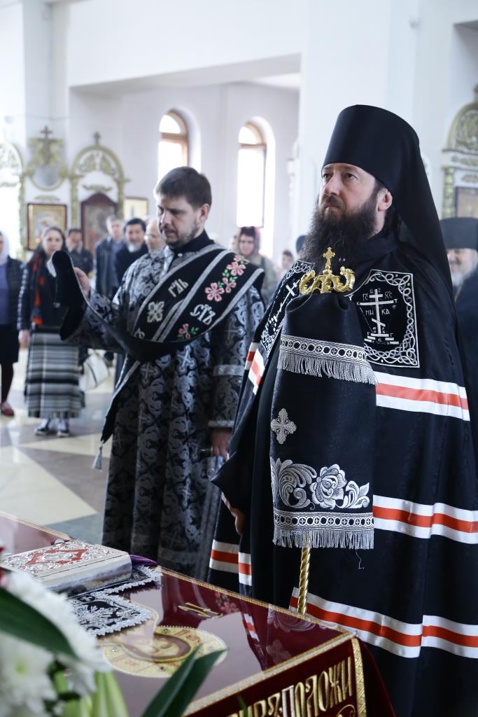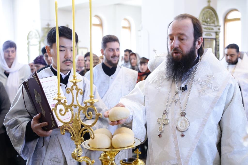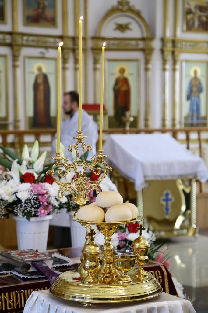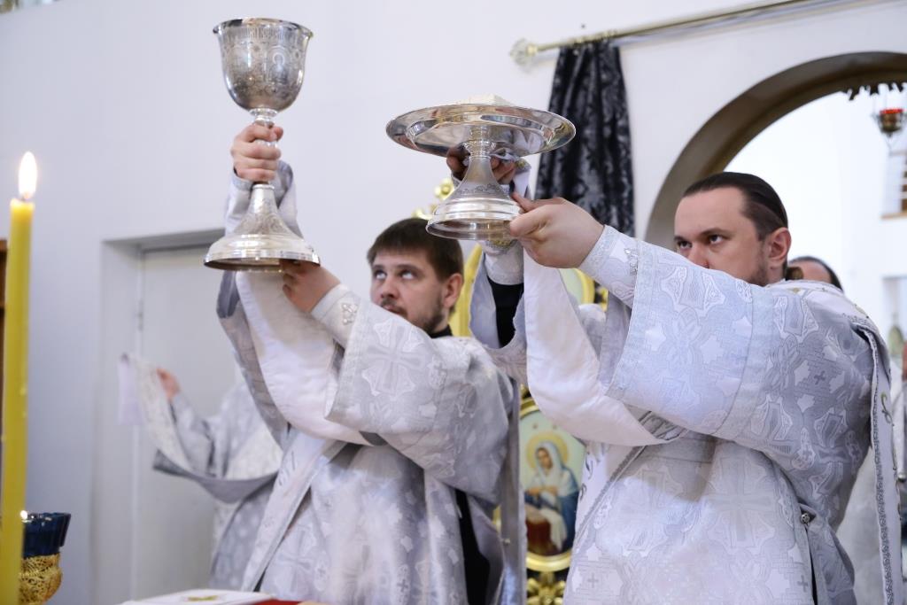 По заамвонной молитве Преосвященный владыка совершил освящение хлеба и вина.