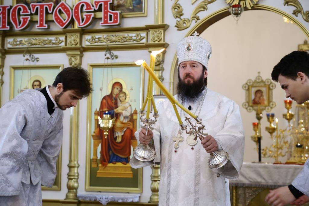 За богослужением владыка Амфилохий вознес молитву о мире на Святой Земле, которая ежегодно совершается в Великую субботу во всех храмах Русской Православной Церкви.