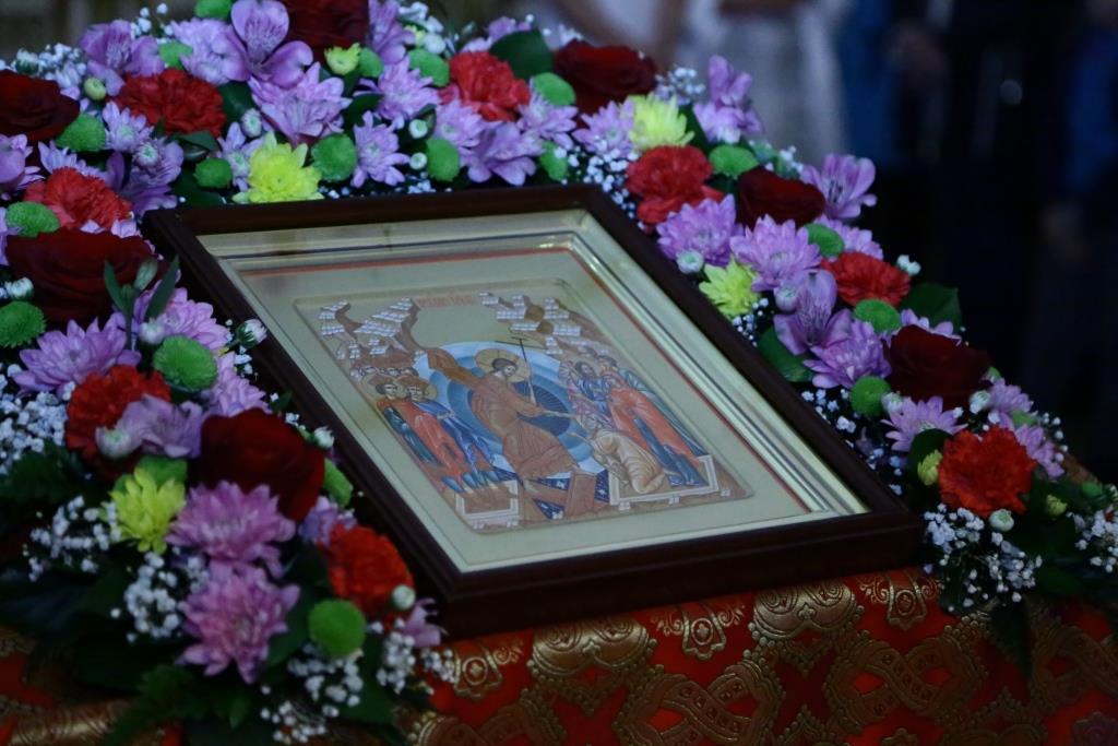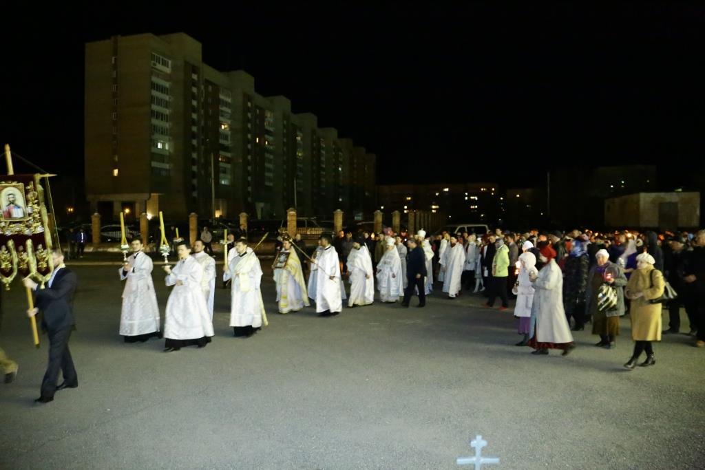 Под пение стихиры «Воскресение Твое, Христе Спасе» вокруг храма был совершен крестный ход.