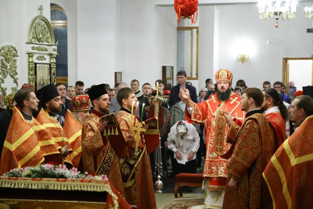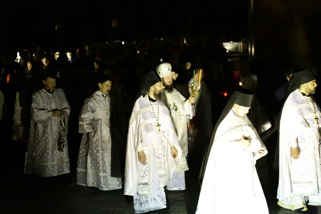 За Пасхальной заутреней иеромонах Силуан (Магилёв) прочитал традиционное Слово огласительное святителя Иоанна Златоуста на Святую Пасху.
