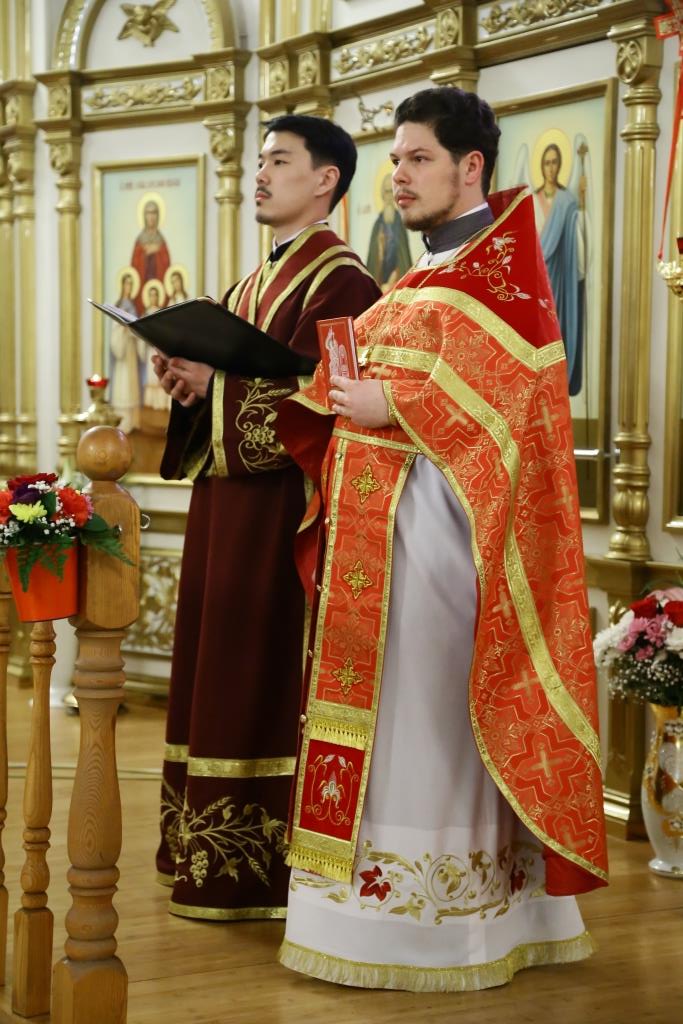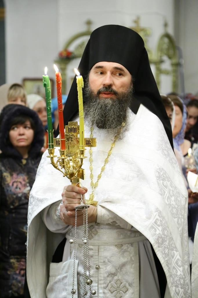 Его Преосвященству сослужили: духовник Усть-Каменогорской епархии архимандрит Спиридон (Теплухин), ключарь Андреевского собора иеромонах Никодим (Авдеев), клирик храма иеромонах Севастиан (Андрющенко), секретарь Управляющего епархией иеромонах Силуан (Магилёв), заведующий канцелярией Усть-Каменогорского епархиального управления иерей Константин Дьяков, клирик собора иерей Алексий Клепиков; протодиакон Георгий Засыпкин, протодиакон Андрей Дудник, иеродиакон Мефодий (Шевчук), диакон Георгий Сухобокий.