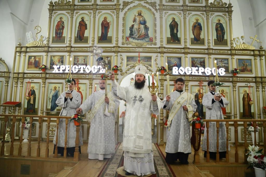 После заамвонной молитвы епископ Амфилохий освятил артос, а по окончании богослужения поздравил его участников с Пасхой: