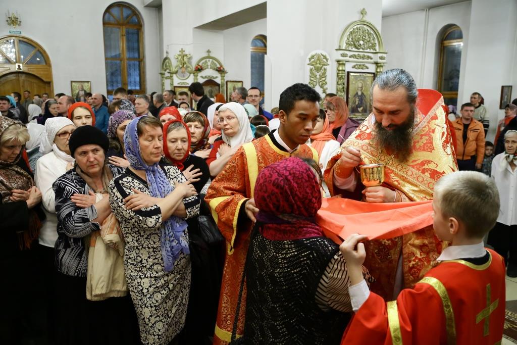 По запричастном стихе было оглашено Пасхальное послание Святейшего Патриарха Кирилла архипастырям, пастырям, монашествующим и всем верным чадам Русской Православной Церкви.
