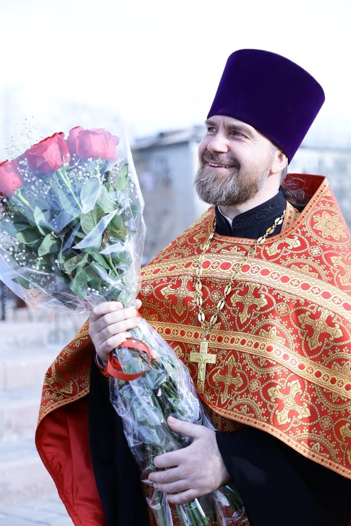 От лица православной молодежи с праздником Пасхи Преосвященного Амфилохия приветствовал иерей Вячеслав Гутов.
