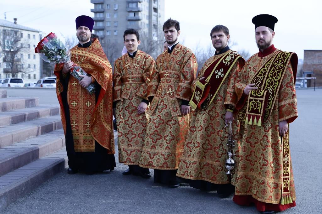 Владыке Амфилохию сослужили: благочинный Усть-Каменогорского церковного округа иерей Алексий Анищенко, секретарь Усть-Каменогорской епархии иерей Евгений Яганов, председатель Епархиальной комиссии по делам молодёжи иерей Вячеслав Гутов, городское духовенство, клирики кафедрального собора.