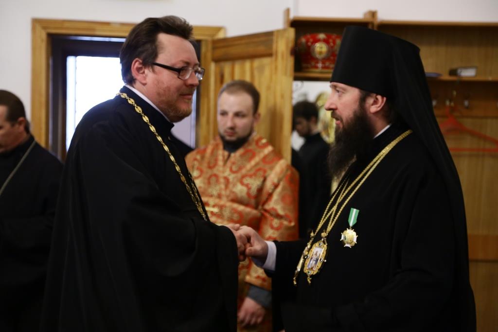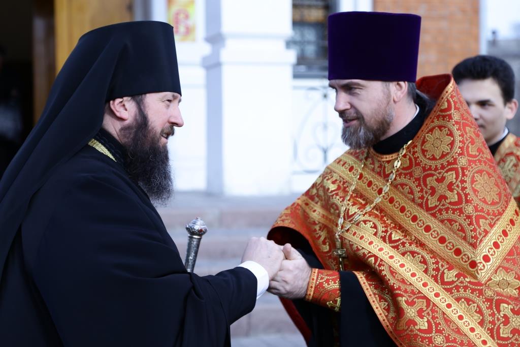 По окончании Пасхальной вечерни отец благочинный Алексий Анищенко от лица духовенства и мирян епархии поздравил владыку Амфилохия со Светлым праздником Пасхи.