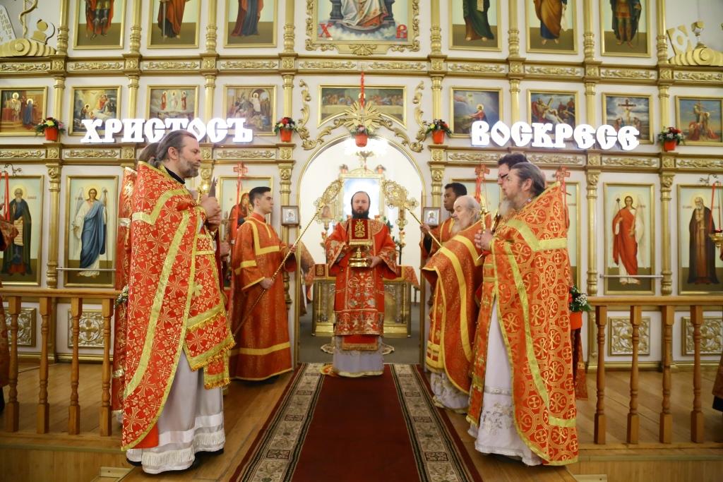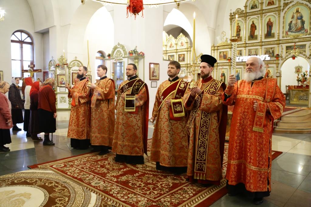 Его Преосвященству сослужили: духовник Усть-Каменогорской епархии архимандрит Спиридон (Теплухин), благочинный Усть-Каменогорского церковного округа иерей Алексий Анищенко, настоятели храмов Восточно-Казахстанской области, духовенство Усть-Каменогорско-Семипалатинской епрахии.
