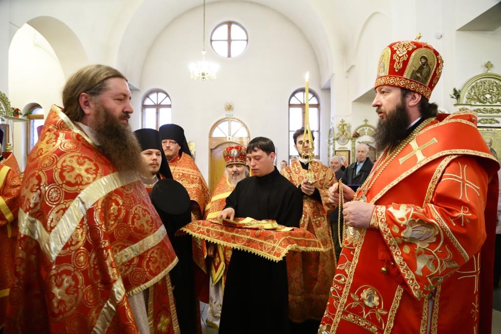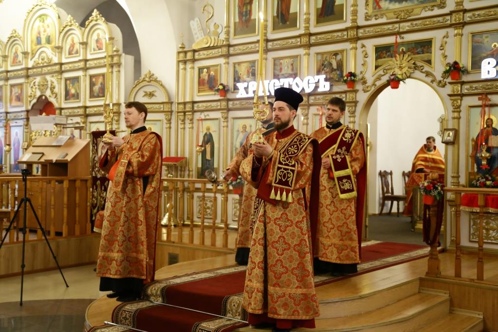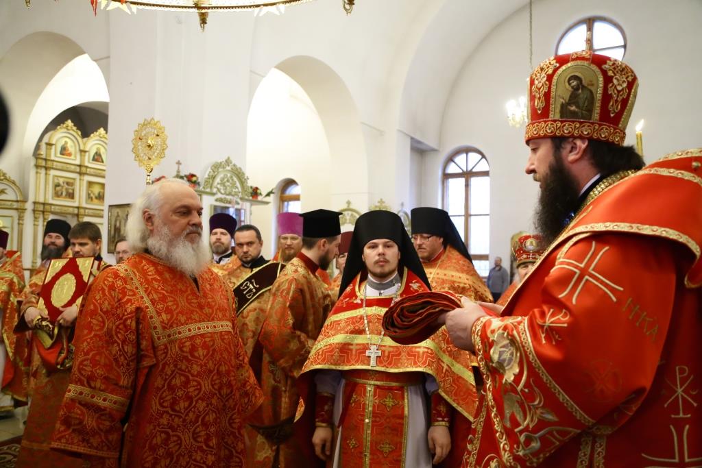 На малом входе за усердное служение Церкви Божией ряд клириков к празднику Святой Пасхи были удостоены богослужебно-иерархических наград.
