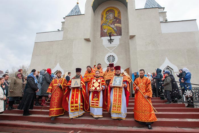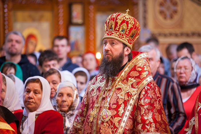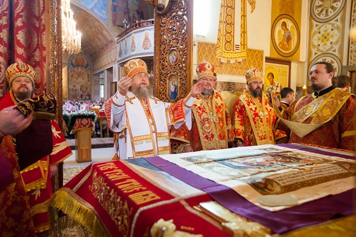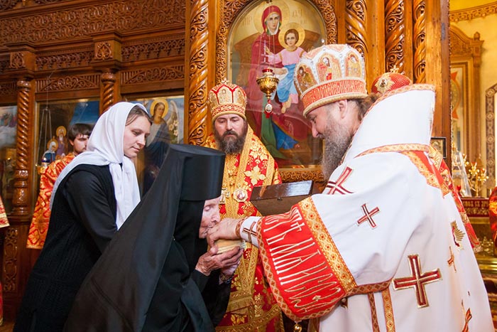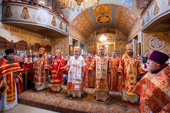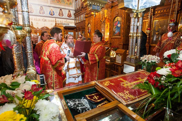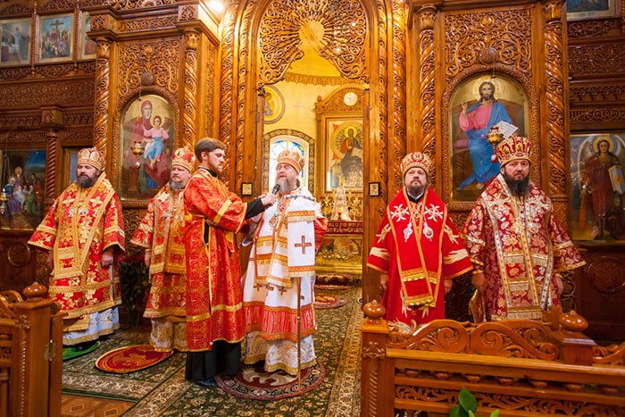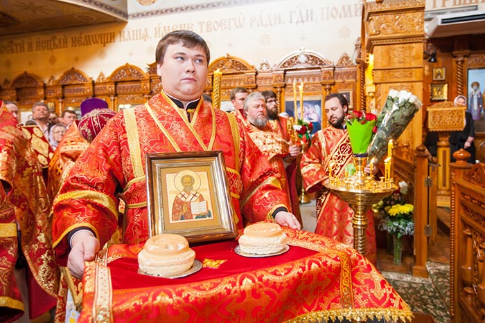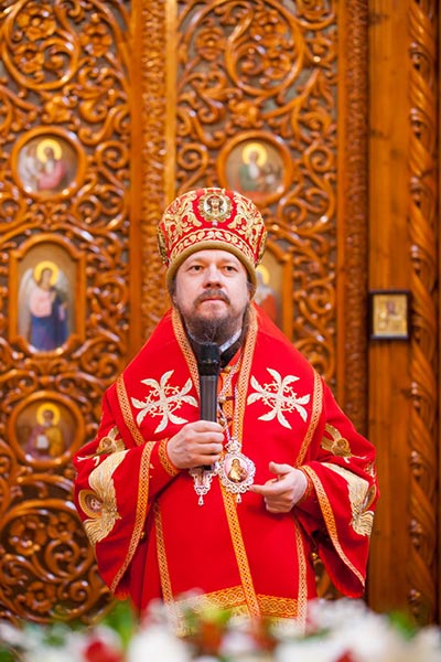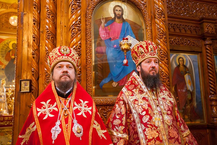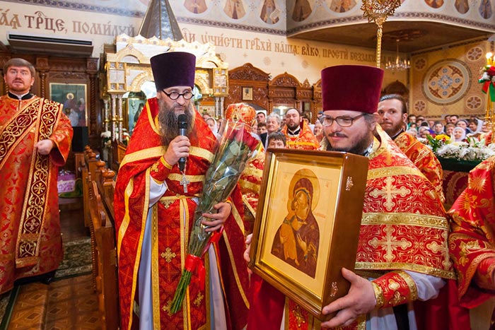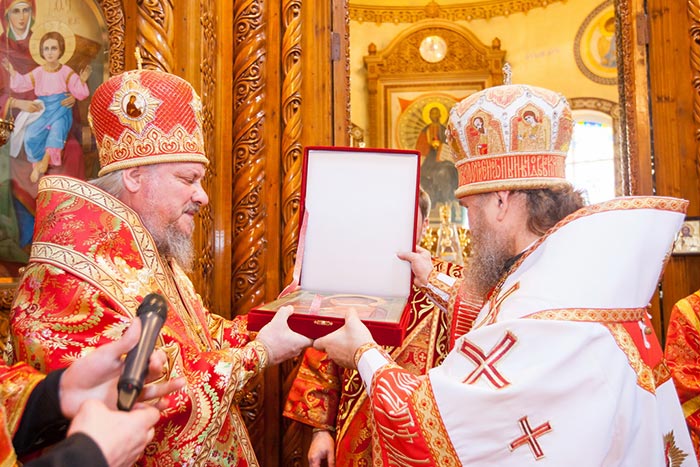 После отпуста Литургии митрополит Александр тепло поздравил с днем тезоименитства Преосвященного епископа Севастиана, вручил святую просфору и подарил на молитвенную память икону Божией Матери «Умиление».