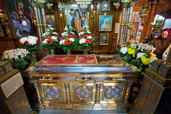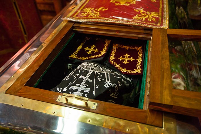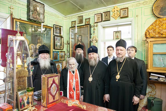 В храме обители архипастыри поклонились святыням и, по сложившейся традиции, митрополит Александр и епископ Севастиан посетили мемориальную келью преподобного старца, где пропели тропарь и величание святому Севастиану.