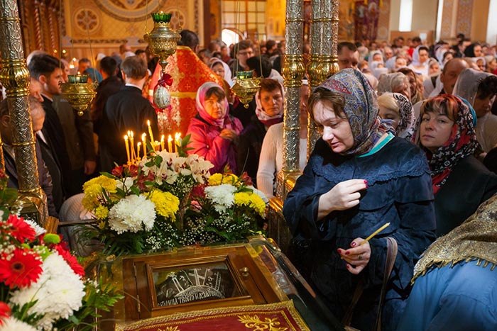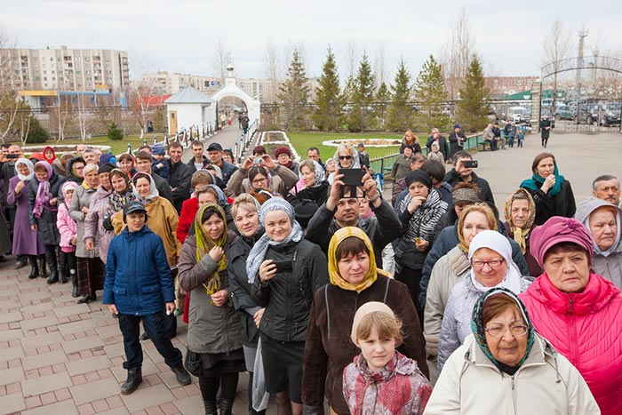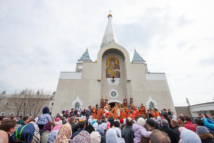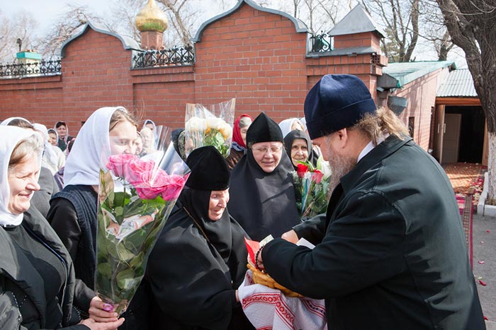 За Литургией молились: настоятельница Богородице-Рождественского женского монастыря игумения Севастиана (Жукова) с сестрами обители; представители казачества, благотворители епархии, многочисленные паломники из Казахстана, России и стран СНГ.