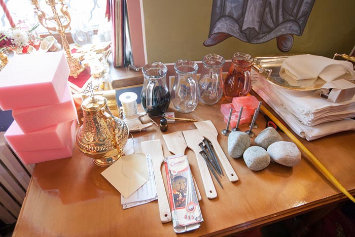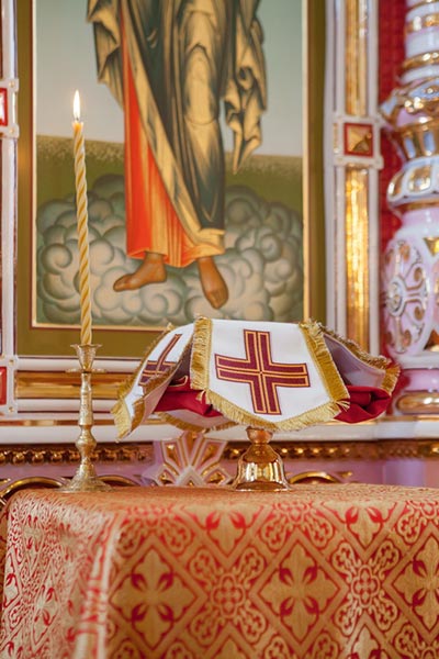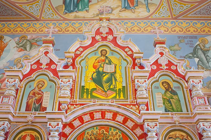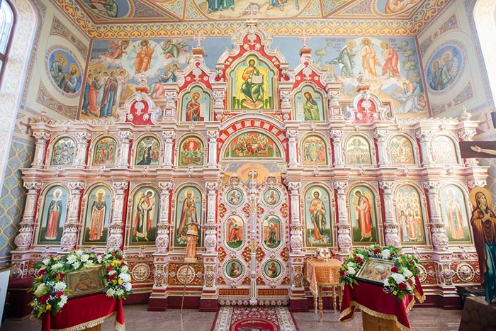 Иконостас новомученического храма в Малиновке выполнен по уникальным технологиям из фарфора на предприятии ООО «Фарфор Сысерти» (Россия, Екатеринбургская губерния).