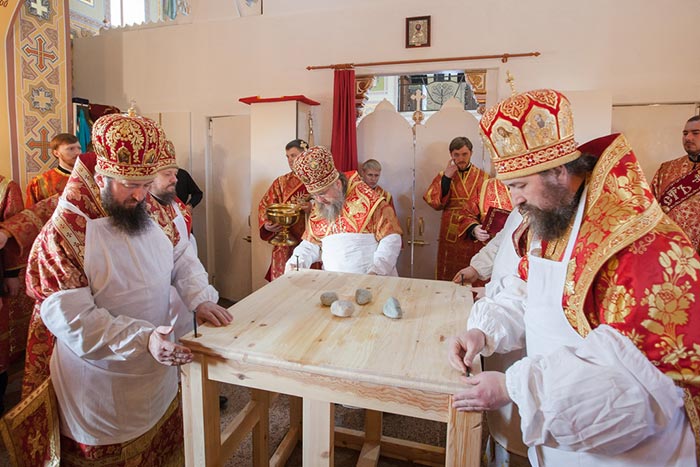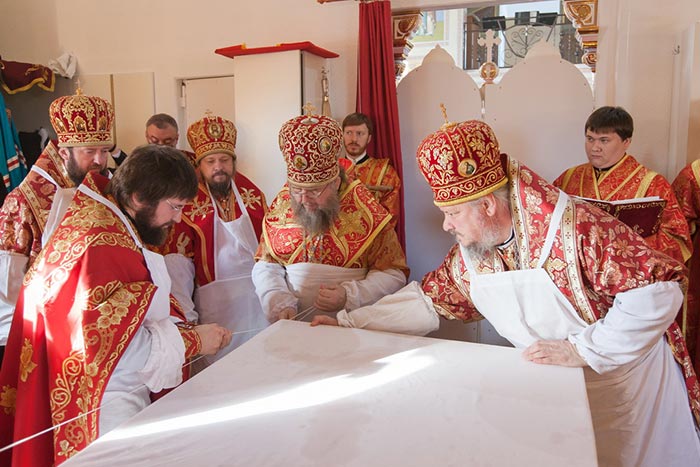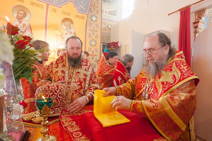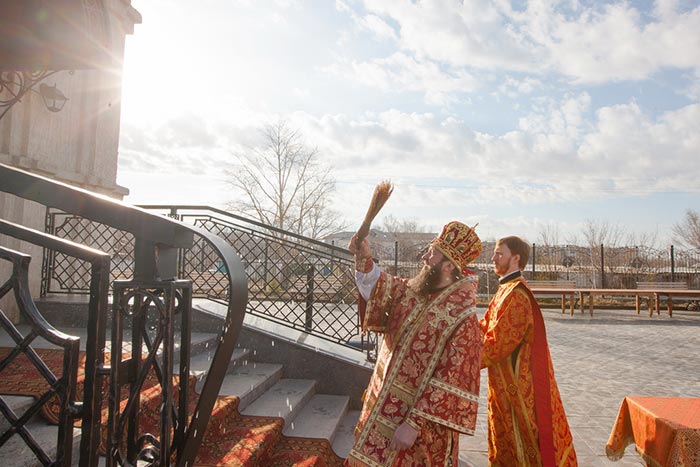 Божественная Литургия завершилась славлением Воскресению Христову, после чего митрополит Александр поприветствовал архипастырей, священнослужителей и мирян пасхальным возгласом: «Христос воскресе!» и сказал слова сердечной благодарности всем, кто молитвой, жертвой или личным участием помогал создавать новый храм.