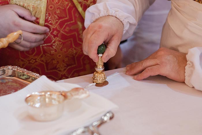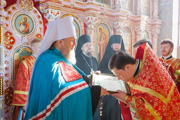 Ключарю храма иерею Максиму Маджитову митрополит Александр вручил Грамоту о великом освящении, подписанную архипастырями – участниками богослужения.