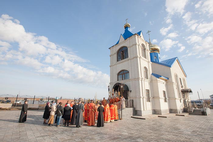 После вручения наград и памятных подарков митрополит Александр обратился к собравшимся с проповедью о значении храма в жизни православного христианина. «В светлые Пасхальные дни, когда Церковь земная и небесная славит тридневно воскресшего Христа Жизнодавца, мы стали участниками освящения нового храма. Православный храм, являющийся на земле местом благодатного присутствия Божия, играет особую роль в жизни христианина. В храме мы возносим Творцу и Подателю всяческих благ свои молитвы, в нем Врачу душ и телес мы открываем свои душевные раны и исцеляемся Его благодатью, в храме Божием мы участвуем в спасительных церковных Таинствах, приобщаемся Тела и Крови Христа Спасителя, черпаем духовные силы для своего жизненного пути. «Как пристань, – пишет великий учитель Церкви святитель Иоанн Златоуст, – защищенная от ветров и волн, дает полную безопасность входящим в нее судам, так и дом Божий, защищая входящих в него от бури мирских дел, дает им стоять спокойно и безопасно». Убежден, что новоосвященный храм во имя святых новомучеников и исповедников Акмолинских, созданный на месте их подвигов и страданий, - будет служить духовному благу и спасению всех, кто с верою и упованием будет приходить сюда для молитвы и утешения», - отметил в своем слове владыка.
