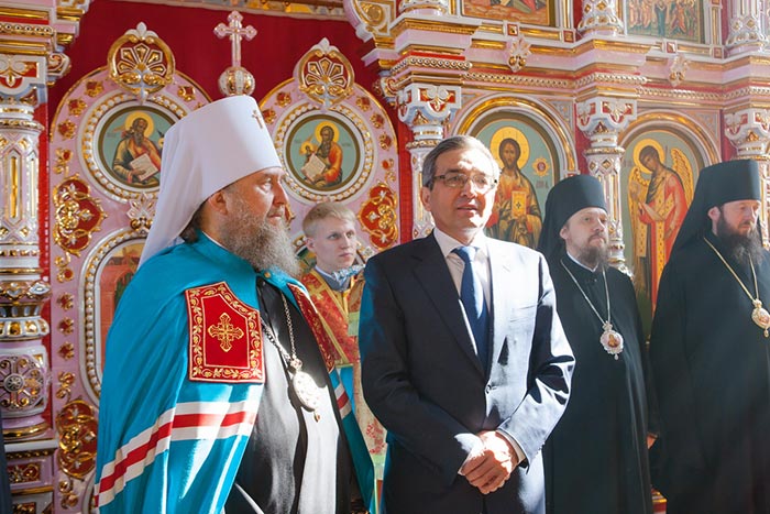 Поздравить иерархов, священнослужителей и прихожан с освящением храма прибыл аким Целиноградского района Акмолинской области М.С. Таткеев. Глава местной исполнительной власти выступил перед собравшимися, отметив роль Православной Церкви в деле укрепления мира и согласия на Казахстанской земле и большое значение в сохранении традиционных духовных и культурных ценностей. Обмениваясь благопожеланиями Глава Митрополичьего округа и аким района напомнили всем присутствующим в храме слова Президента Республики Казахстан Н.А. Назарбаева о том, что традиционный Ислам ханафитского направления и Православное христианство являются духовными столпами в жизни народа страны.