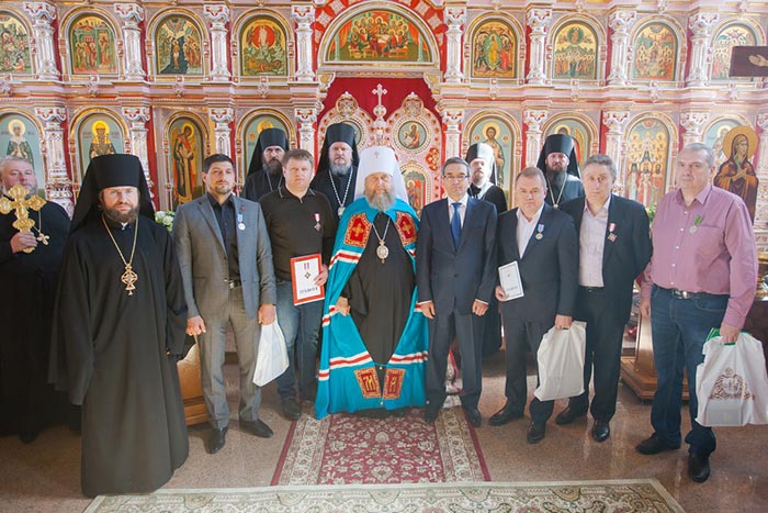 Ордена преподобномучеников Серафима и Феогноста Алма-Атинских удостоен Генеральный директор ТОО СК «Астанатрансстрой» В.И. Поморцев; орденом святых мучениц Веры, Надежды, Любови и Софии награждены - директор ТОО «Астана-ДорСтрой НС» М.В. Шашкова и директор ТОО «Астана-Гранит» Е.Г. Усова; орден священномученика Пимена, епископа Верненского, вручен - А.В. Рубанову, директору ТОО «Астана-Алькор» Я.А. Решетько, Г.П. Морозову, Ш.Г. Джахуташвили; медали преподобномучеников Серафима и Феогноста Алма-Атинских удостоены - В.В. Сараев и директор по развитию ТОО «Партнер-МА» И.М. Ржевский; медалью священноисповедника Николая, митрополита Алма-Атинского, награждены - заместитель Генерального директора по эксплуатации ГКП «Астана су арнасы» С.В. Вилков, директор ТОО «Синичка» А.С. Арутюнян и М.В. Кошкин.