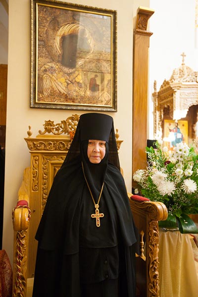 На память о посещении Горненской обители Глава Митрополичьего округа подарил матушке игумении Георгии икону новомучеников и исповедников Казахстанских и позолоченное яблоко – символ Алма-Аты.