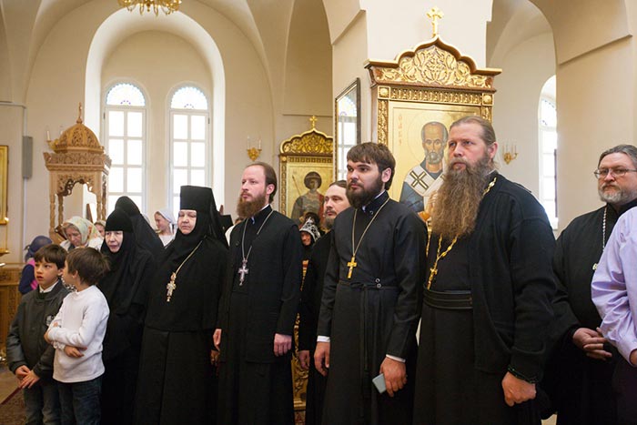 По отпусте Литургии состоялось славление светлому Христову Воскресению – духовенство и монашеский хор поочередно исполнили стихиры Святой Пасхи, после чего митрополит Александр похристосовался с духовенством и верующими.